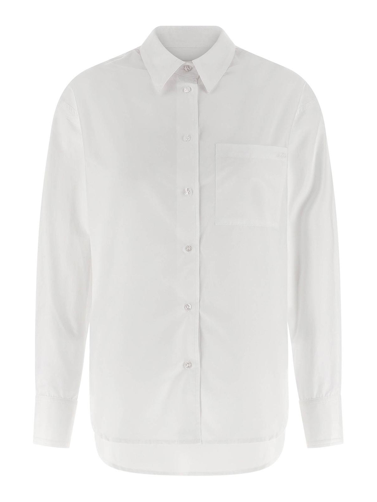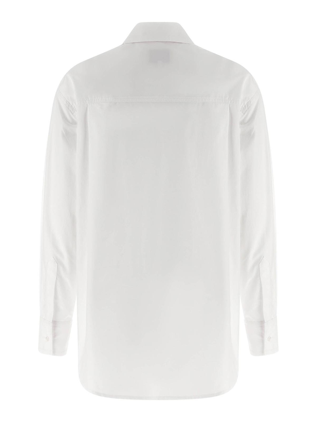 Camicia 'lee' in popeline di cotone, taschino con logo ricamato tono su tono, chiusura frontale con bottoni, maniche lunghe con polsino e spalla scesa, spacchetti laterali, fondo asimmetrico stondato.