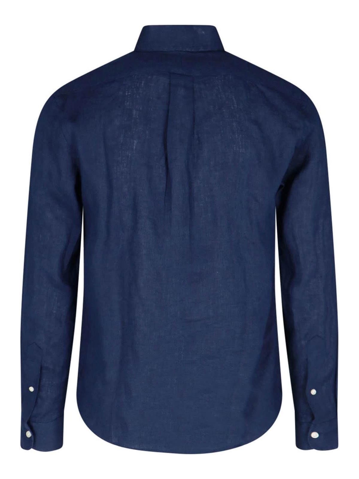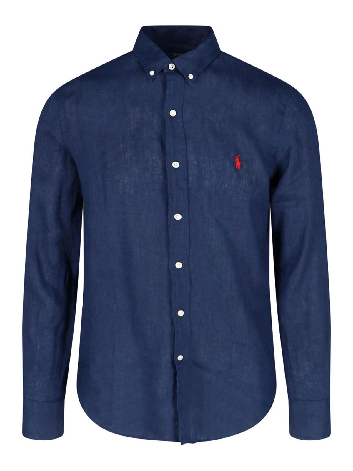 Camicia logo polo ralph lauren blu tonalita'navy colletto button, bottoni logo rosso petto bottoni polsini orlo curvo