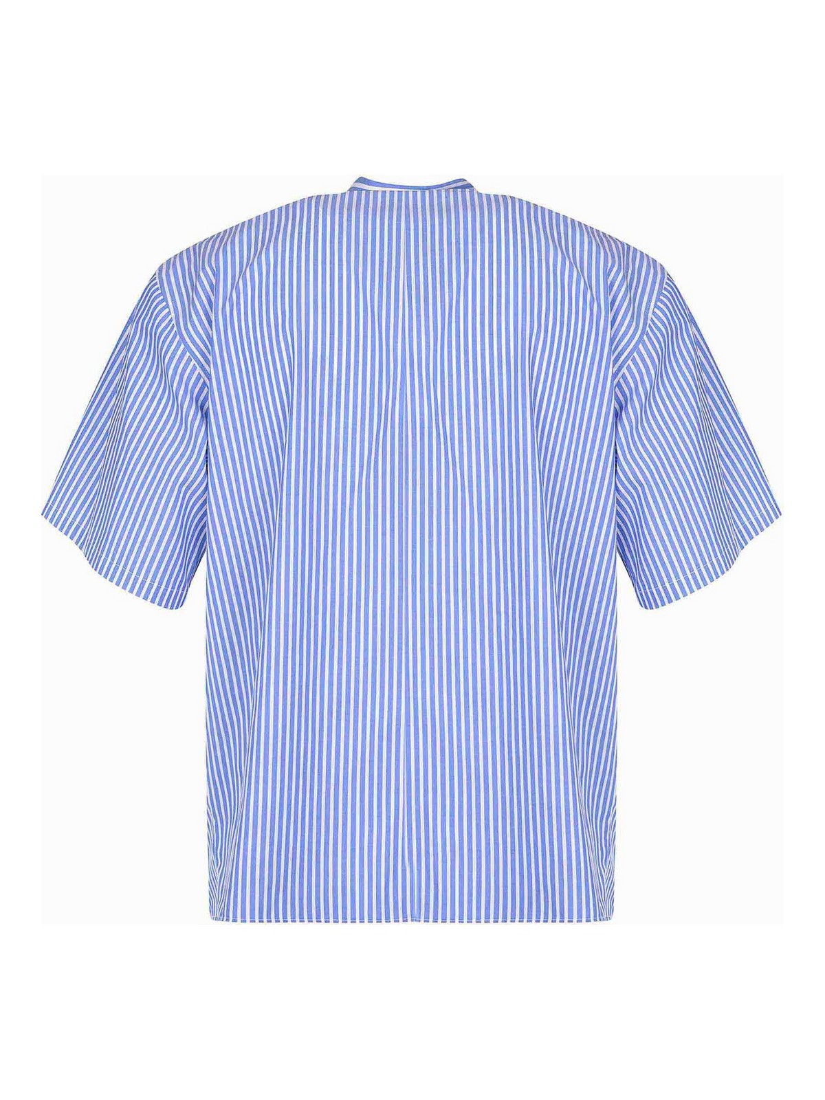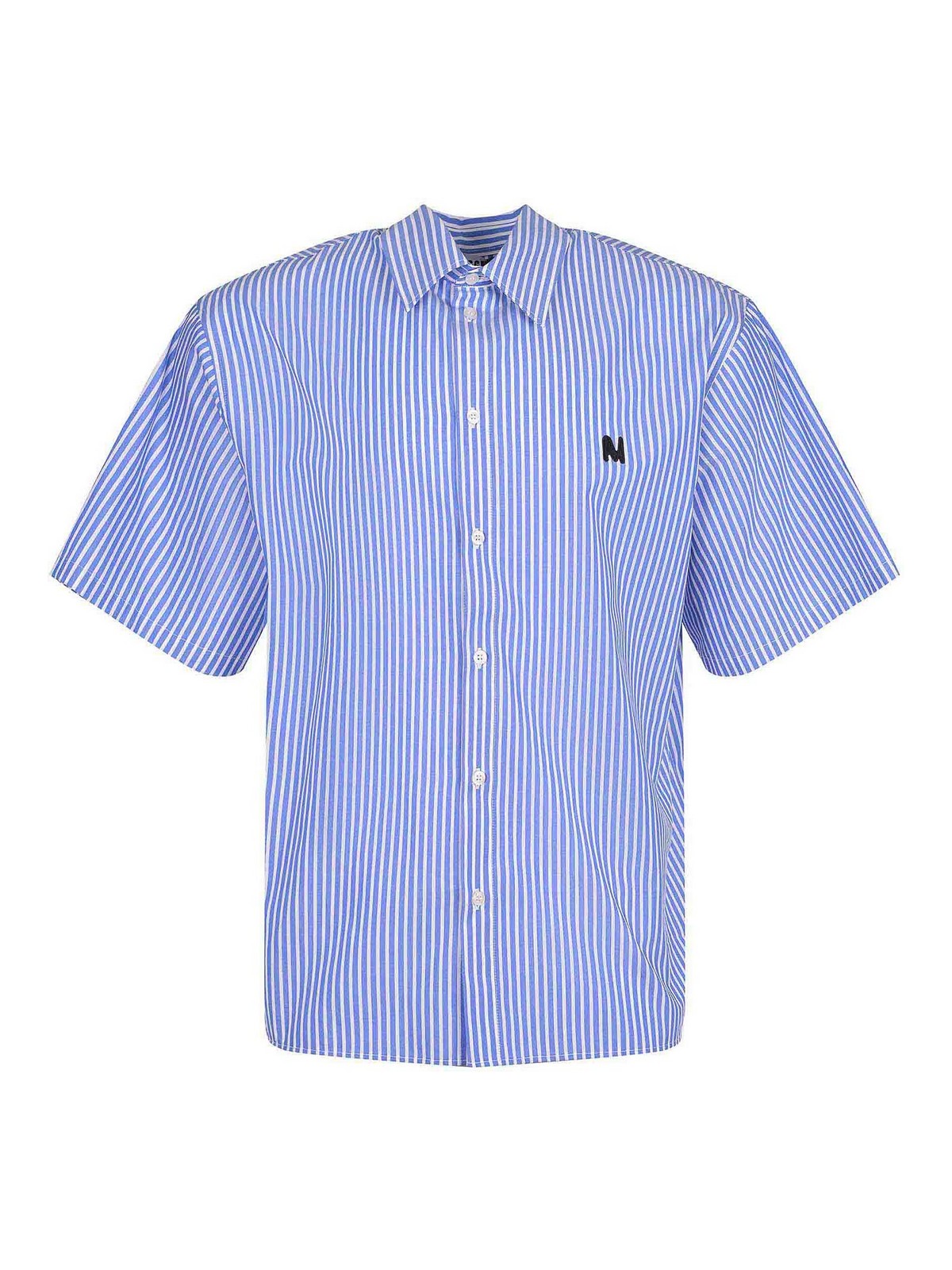 Camicia Msgm in cotone azzurro, fantasia a righe, colletto classico, maniche corte, chiusura frontale con bottoni, monogramma 'm' ricamato a contrasto sul petto, 100% cotone, made in Italy
