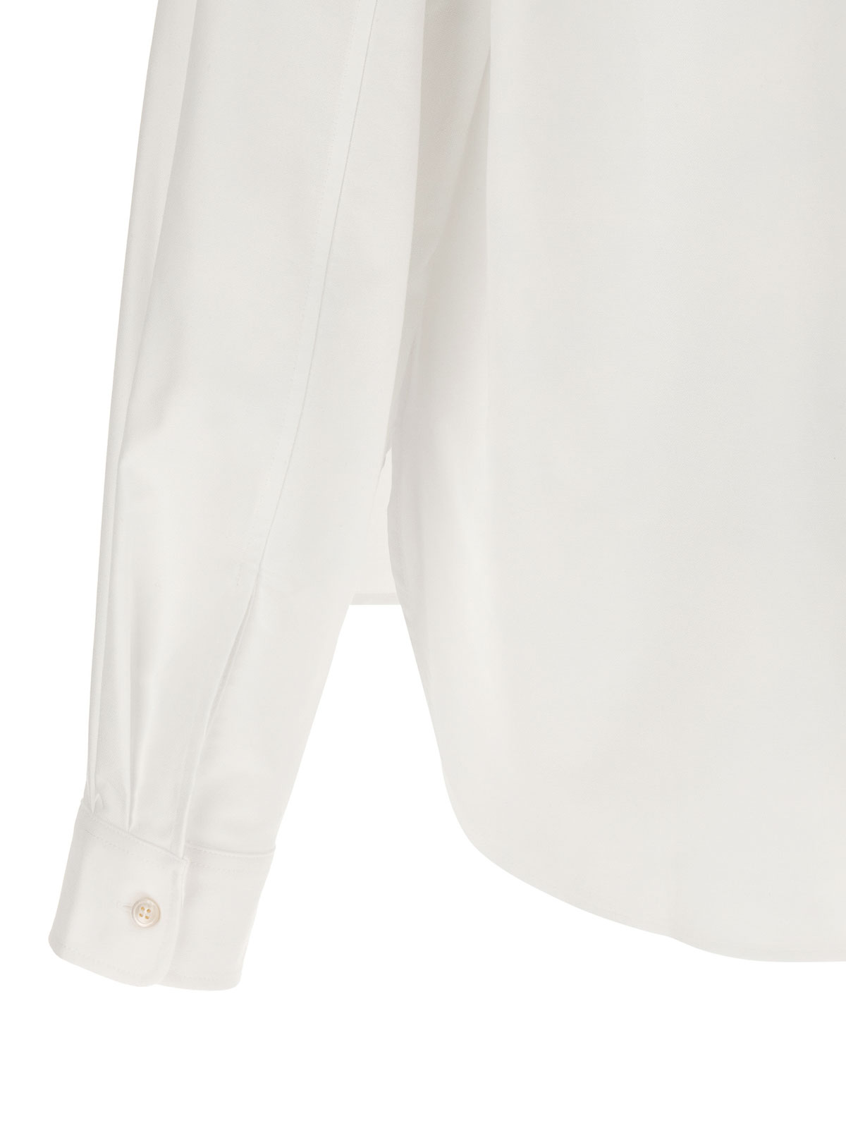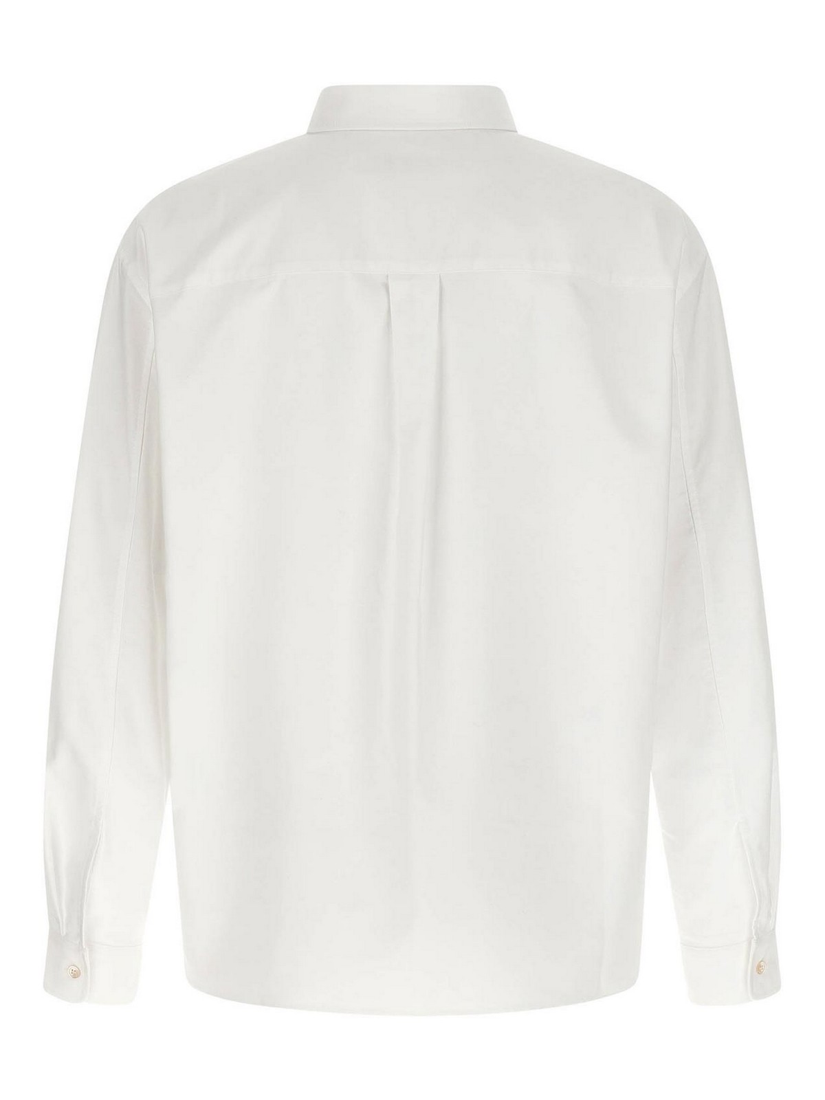 Camicia in cotone con colletto button down, tasca frontale con ricamo a contrasto, lunghezza asimmetrica, maniche lunghe con polsino.