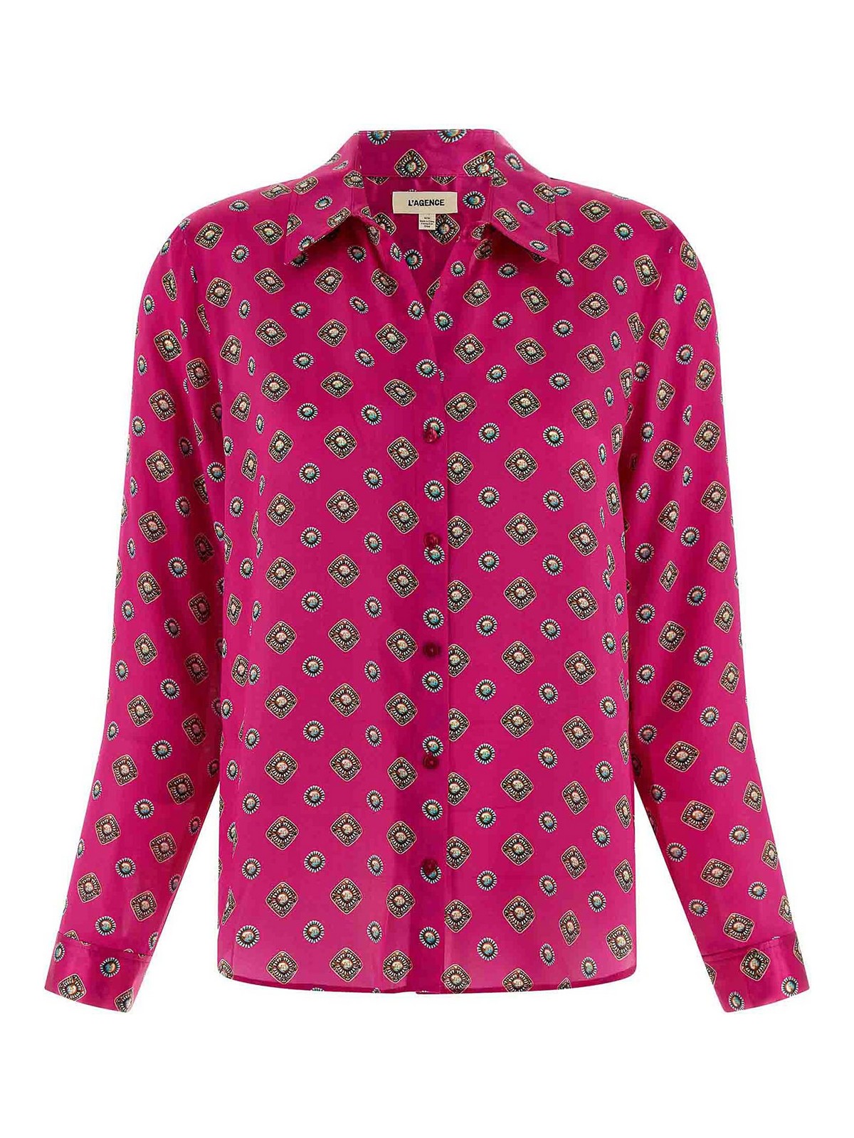 Camicia in seta 'tyler' con stampa charmeuse di ispirazione sud-occidentale, chiusura frontale con bottoni, maniche lunghe con polsino.