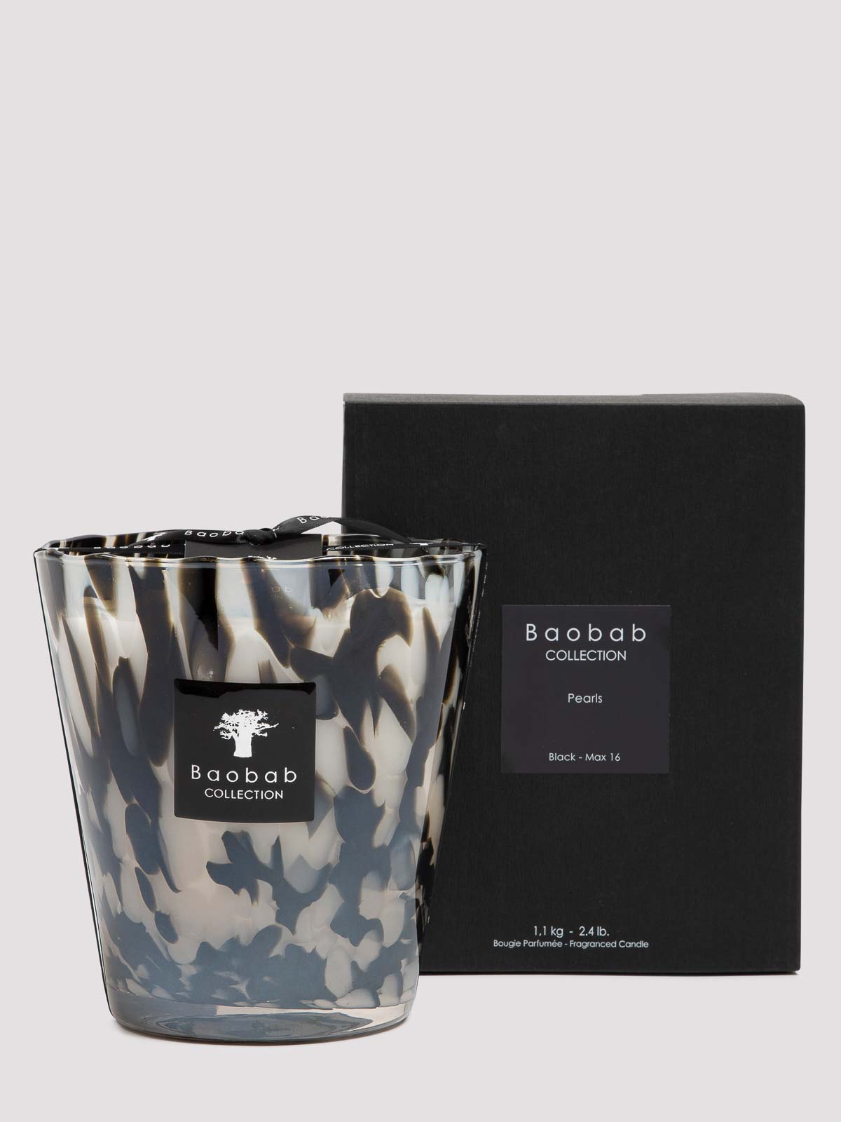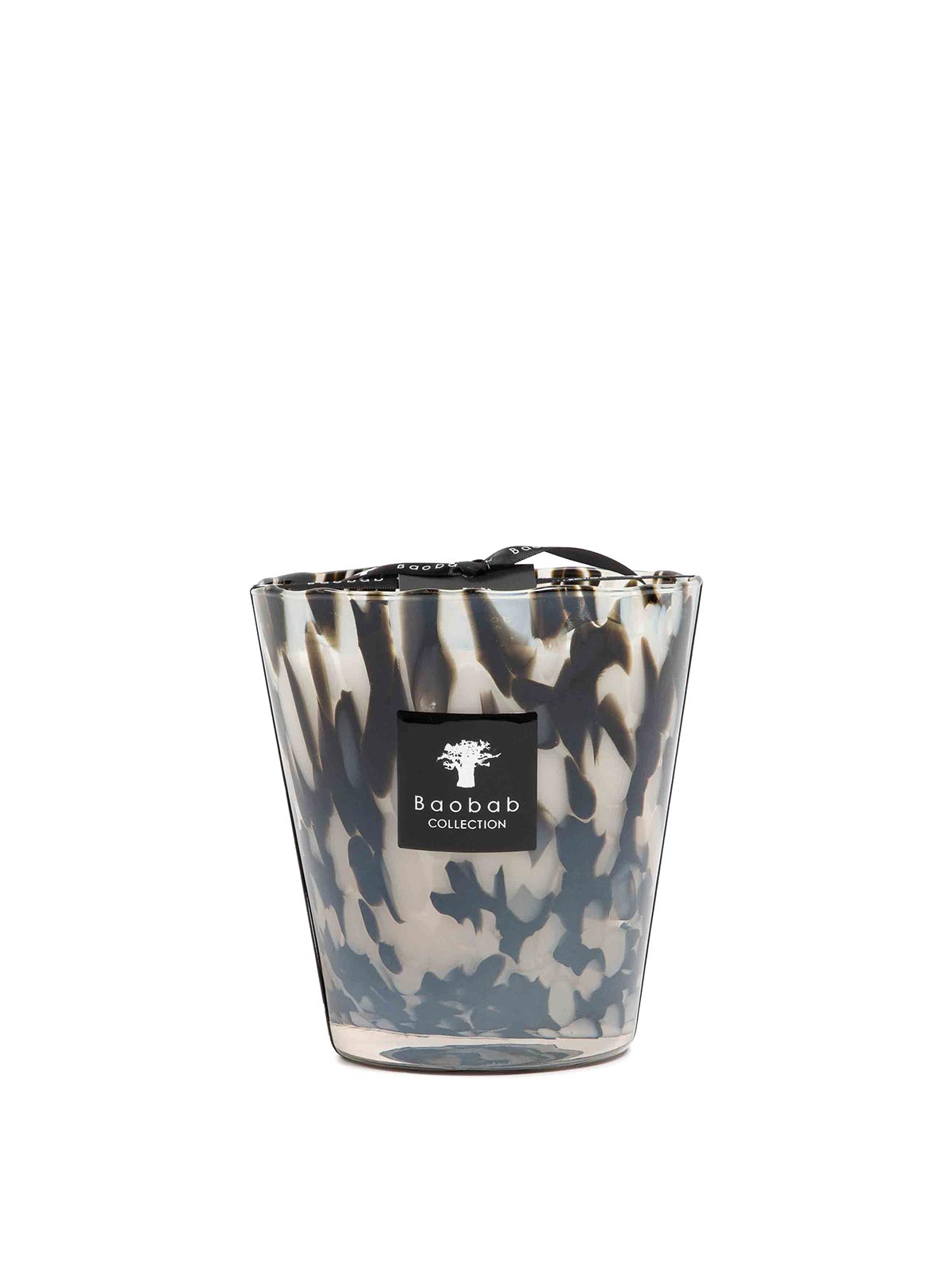 Candela collezione Baobab perle nere max16 della collezione perle. il profumo delle perle nere, forte e sottile, è una miscela unica di zenzero e rosa nera. in vetro soffiato trasparente con dettagli neri, la candela profumata Black Pearls è preziosa come le perle nere da cui prende il nome. è un magnifico oggetto di decorazione con il profumo iconico del marchio. non accettiamo resi su questo articolo