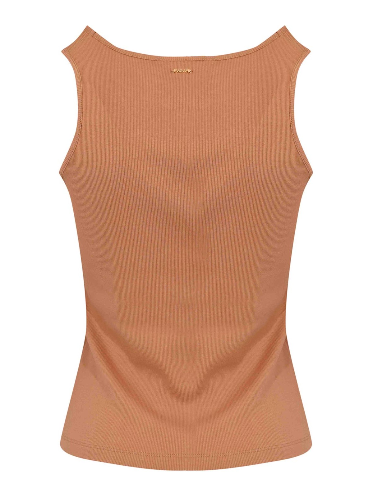 Canotta da donna in cotone, twinset, modello canotta con ricamo floreale, tessuto: cotone a costina, fantasia: tinta unita, maniche: senza maniche, collo: girocollo, chiusura: assente, tasche: assenti, dettagli: ricamo floreale applicato sul davanti, foderato: no, vestibilità: slim