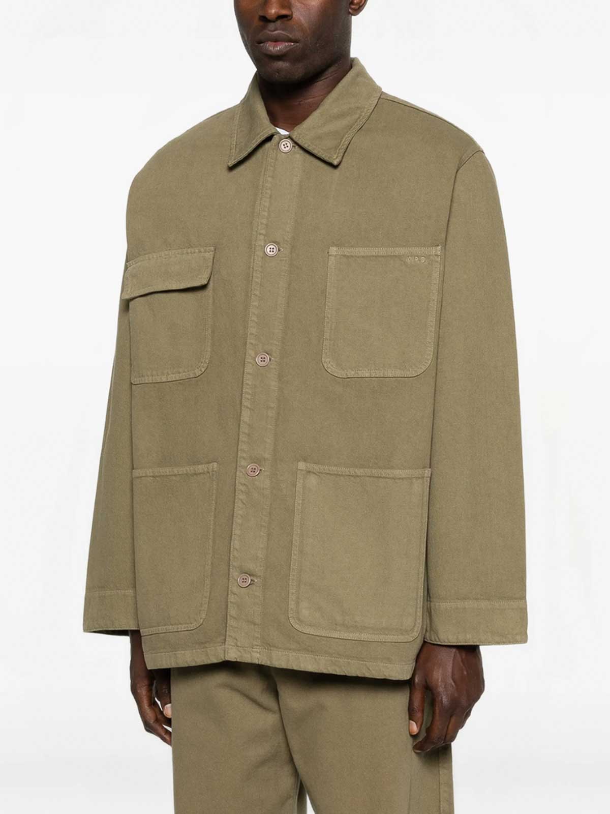 Tasche quadrate kaki chiusura con bottoni colletto classico maniche lunghe