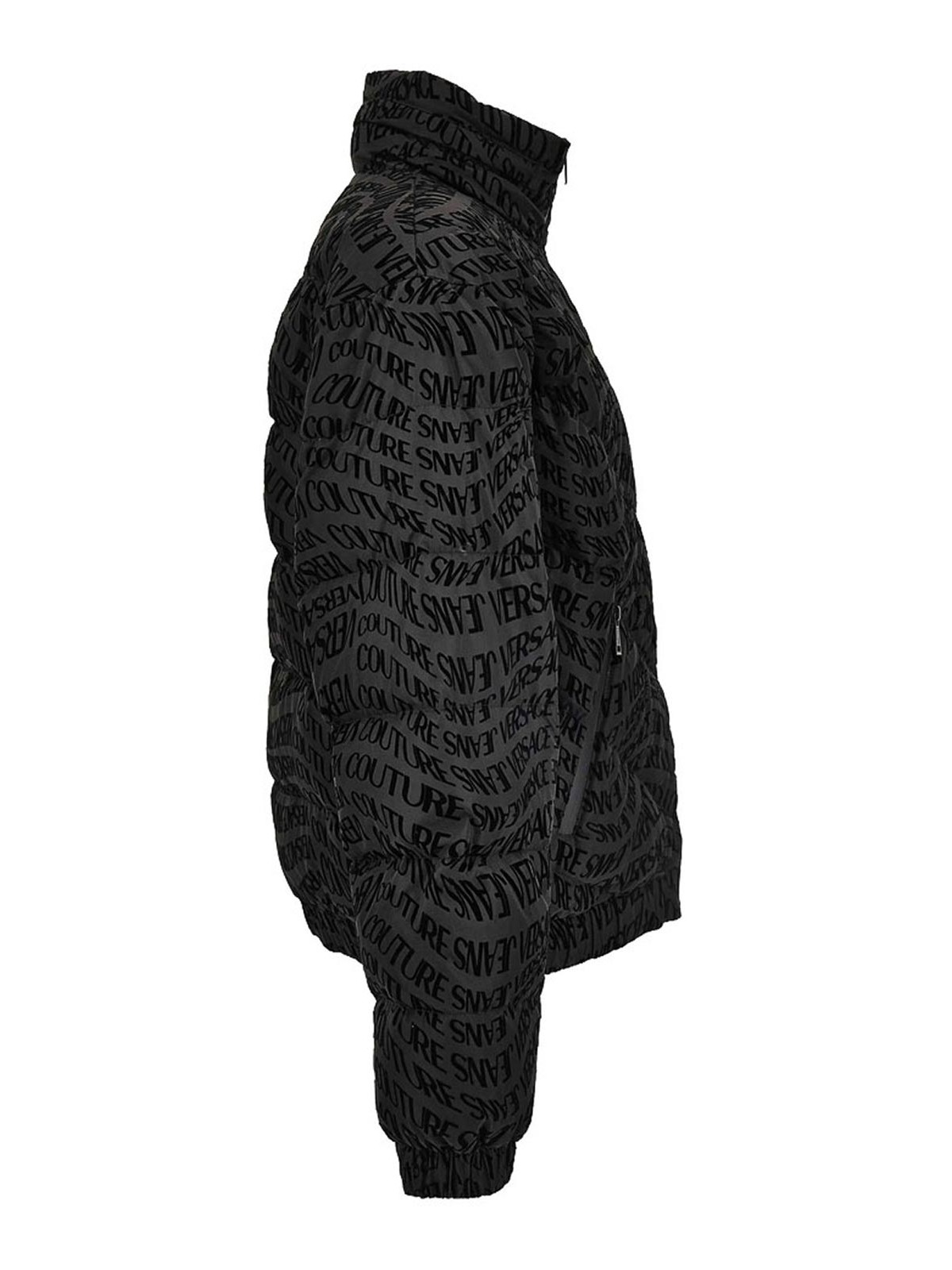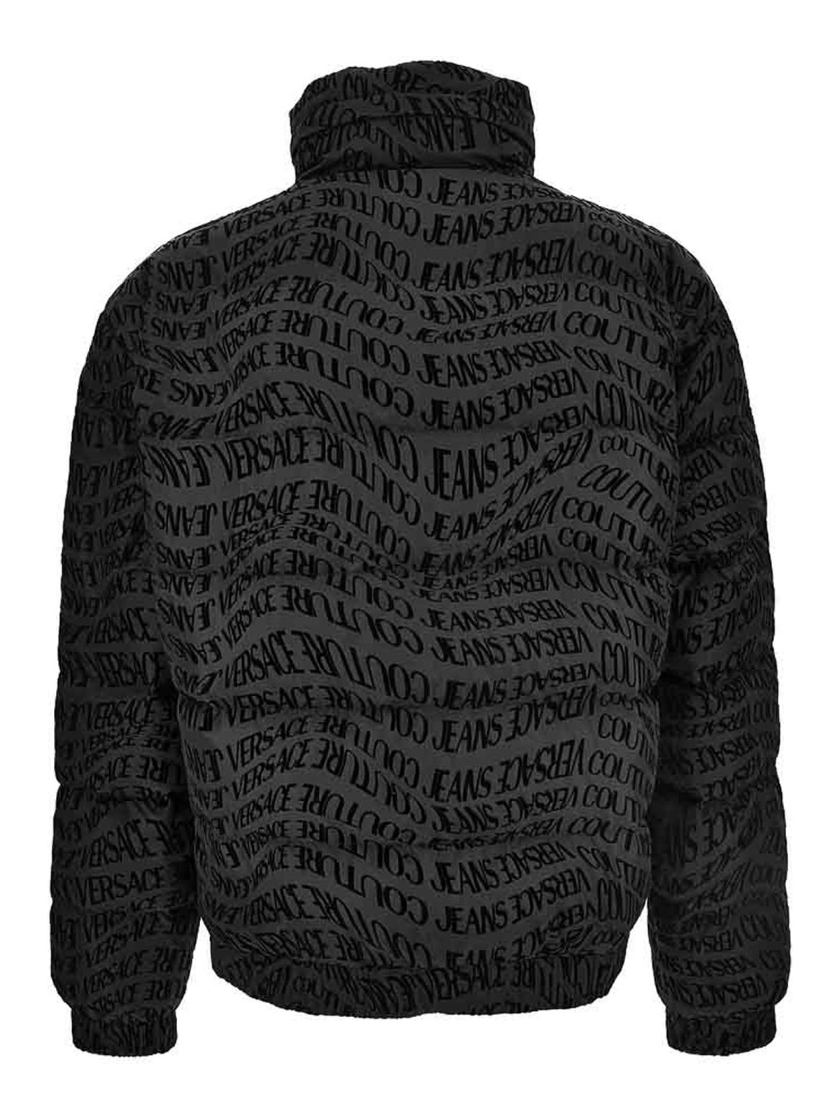 Stampa logo nera all-over, collo alto, chiusura con zip, maniche lunghe, design trapuntato