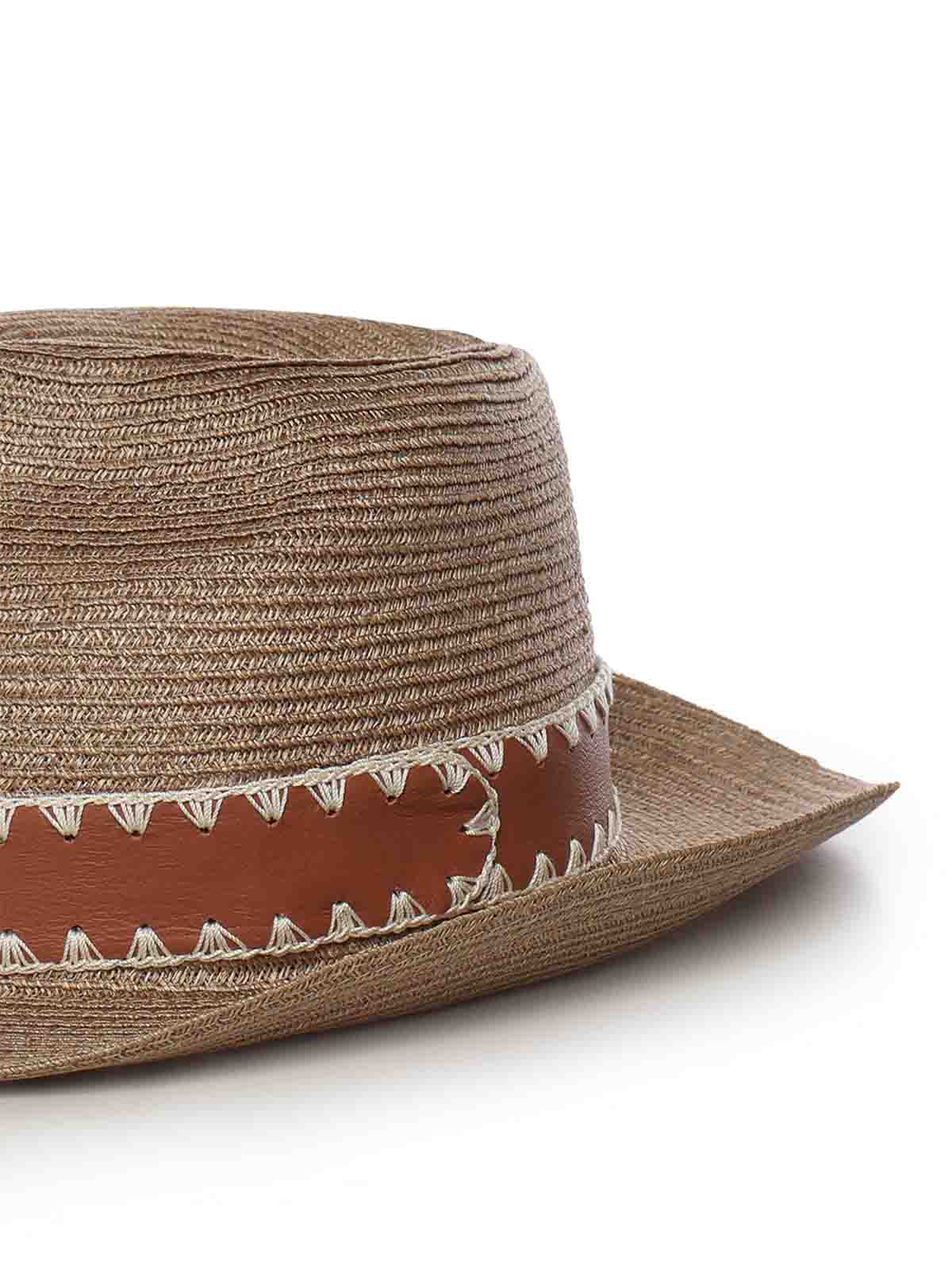 lavorazione artigianale in abaca, nastro a contrasto, made in Italy, colore: tortora