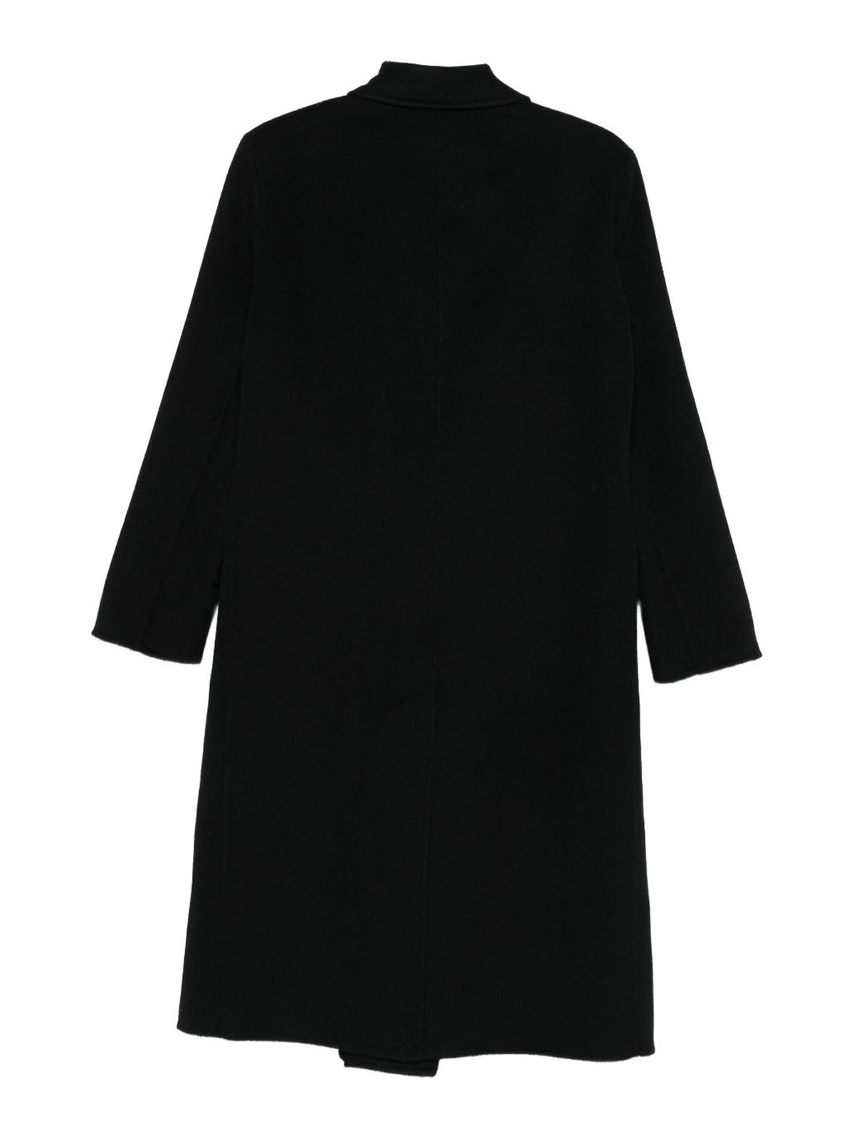 Doppio materiale nero, maniche lunghe a petto, tasche con patta, orlo dritto