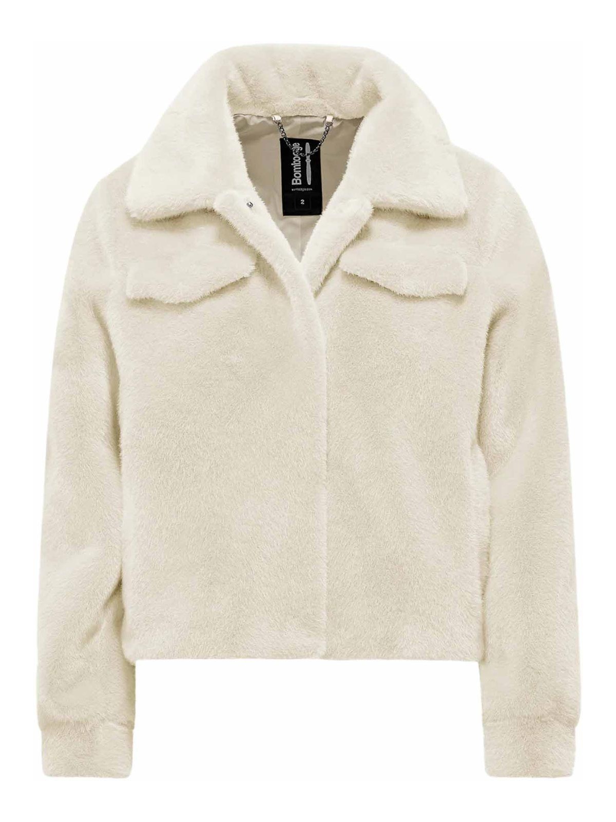 Bomboogie lapin effect jacket giacca in ecopelliccia effetto lapin giacca corta da donna dallo stile raffinato e urbano pensata per offrire comfort e versatilit nella mezza stagione realizzata in pelliccetta sintetica effetto lapin unisce eleganza e praticit grazie alla texture morbida e compatta che riproduce fedelmente laspetto della pelliccia naturale il taglio valorizza la silhouette mantenendo una vestibilita' confortevole mentre la con bottoni a pressione nascosti e rivestiti in garantisce un profilo pulito e ordinato la interna offre protezione termica e agevola la vestibilita' un capo resistente leggero e facile da mantenere ideale per un look contemporaneo e femminile nelle giornate fresche pelliccetta sintetica effetto lapin per un aspetto elegante e contemporaneo taglio per comfort e libert di movimento frontale con bottoni a pressione nascosti rivestiti in interna per isolamento termico leggero sintetico resistente e di facile manutenzione ideale per la mezza stagione e luso quotidiano