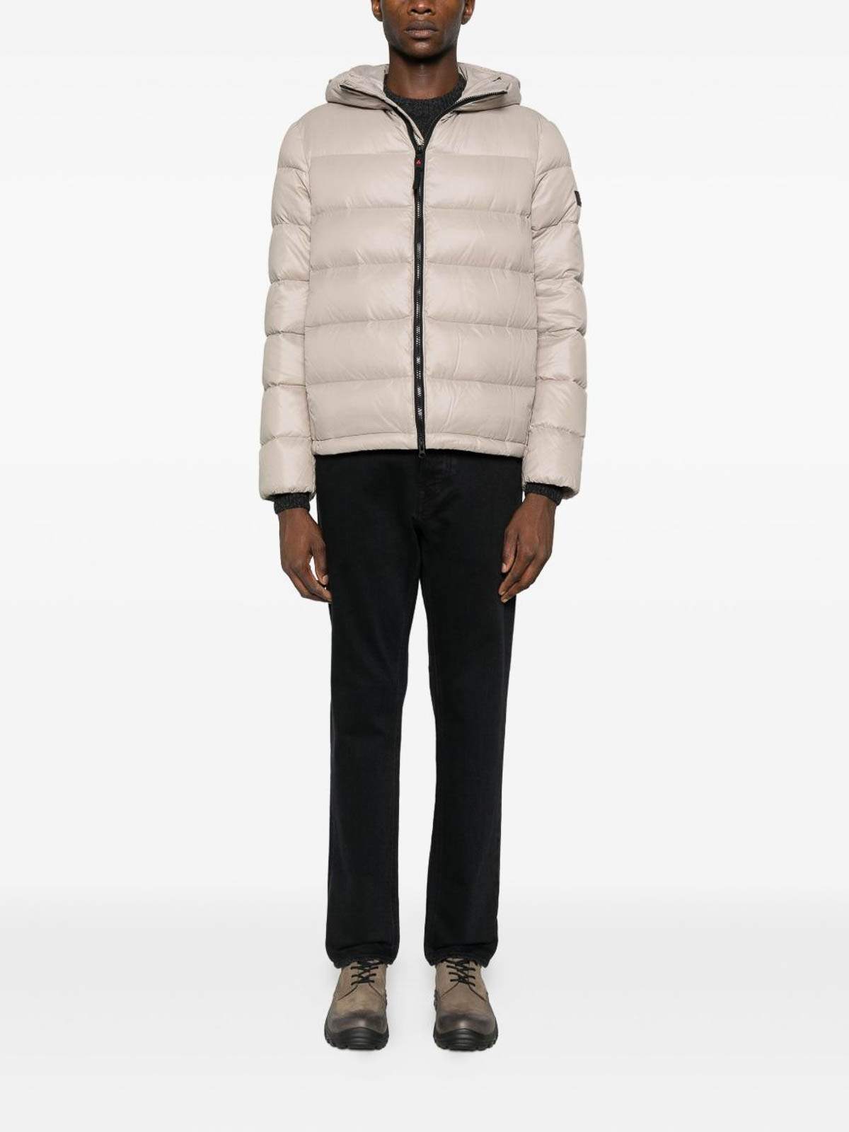 Caratteristiche beige design trapuntato cappuccio con zip maniche lunghe applicazione con logo