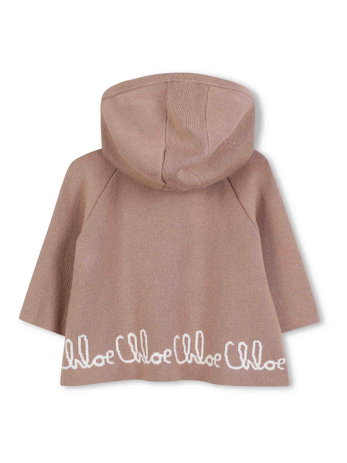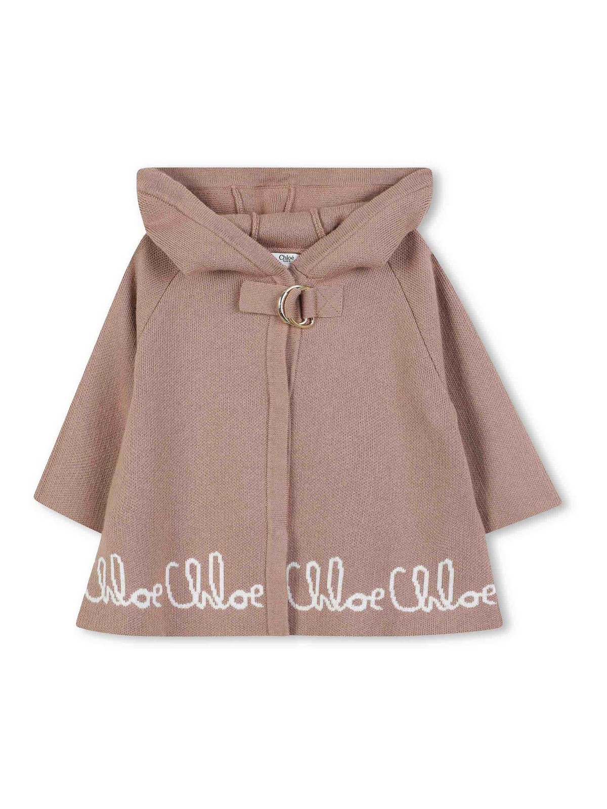 Marrone chiaro scritta con logo cappuccio chiusura a bottoni maniche lunghe