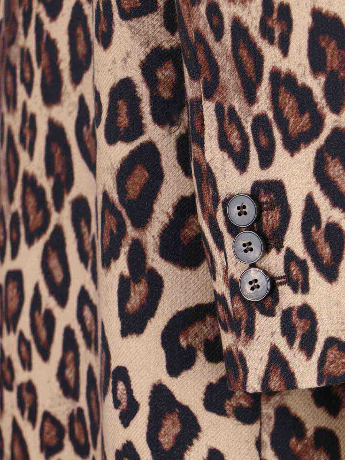 Cappotto in lana vergine alberto biani, marrone, stampa animalier all-over, collo alto, chiusura bottoni, due tasche laterali, dettaglio spacco retro, bottoni polsini, orlo dritto.