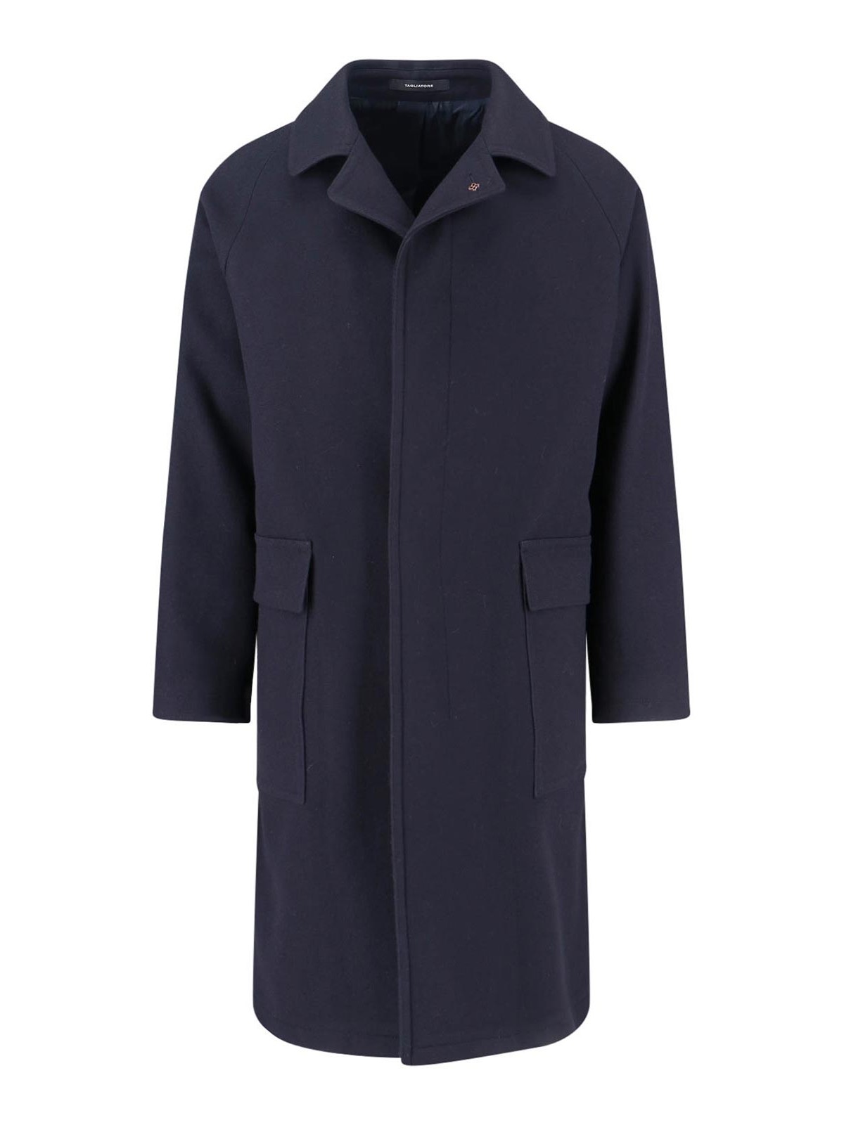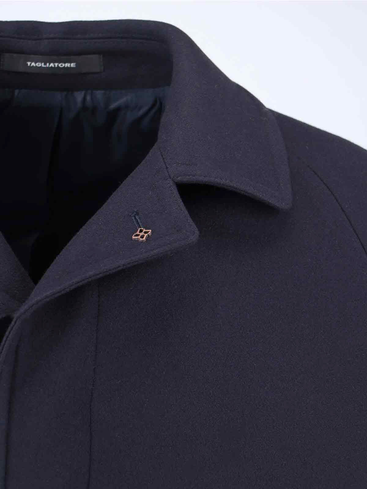 Cappotto in misto lana tagliatore, realizzato in esclusiva per sugar, blu, tonalit navy, revers classico, chiusura bottoni, due tasche patta laterali, spacco su fondo retro, una tasca interna zip, orlo dritto.