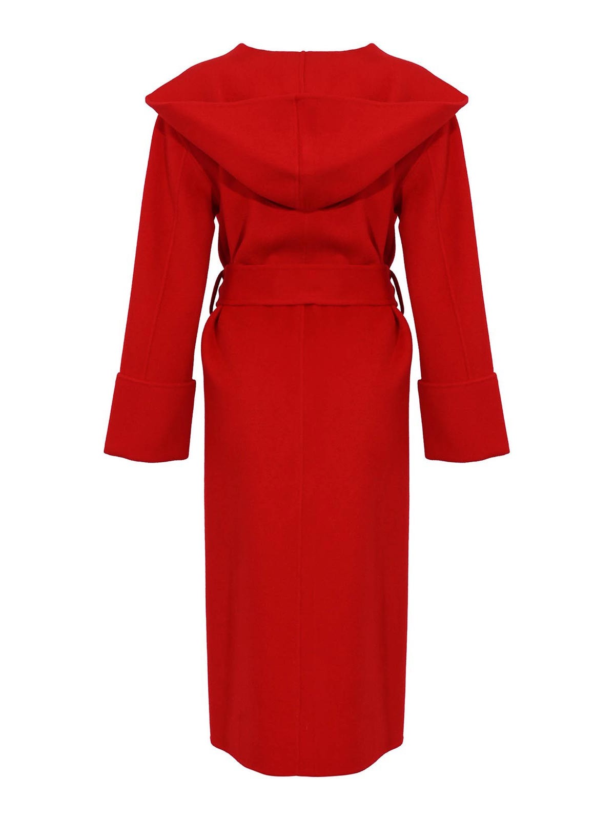 Cappotto lungo doppio con cappuccio modello doppio compatto alpha studio puro collo lungo con polsini larghi ampio cappuccio integrato nel collo a scialle avvolgente con cintura abbinata in vita tasche applicate linee pulite e contemporanee taglio vivo, costruzione dei bordi ampio cappuccio scultoreo cintura abbinata per accentuare la silhouette finiture meticolosamente realizzate tono su tono vestibilità morbida e aderente