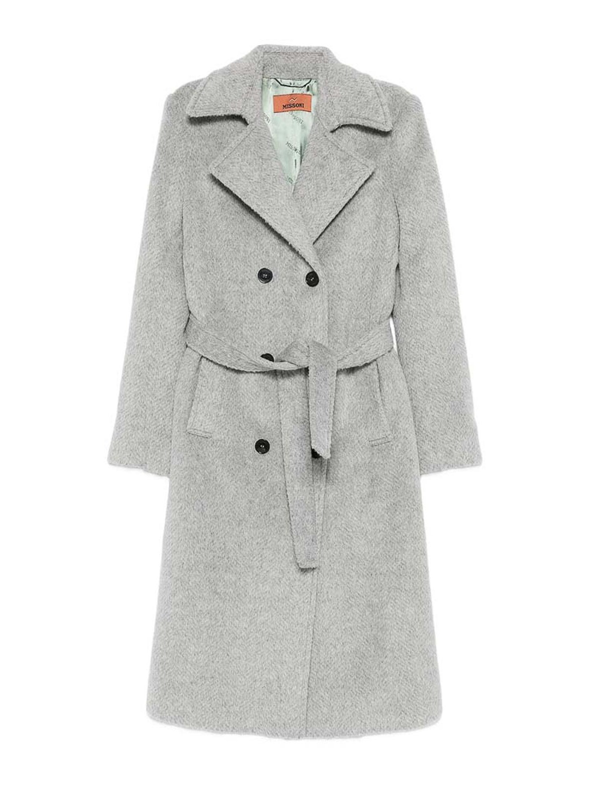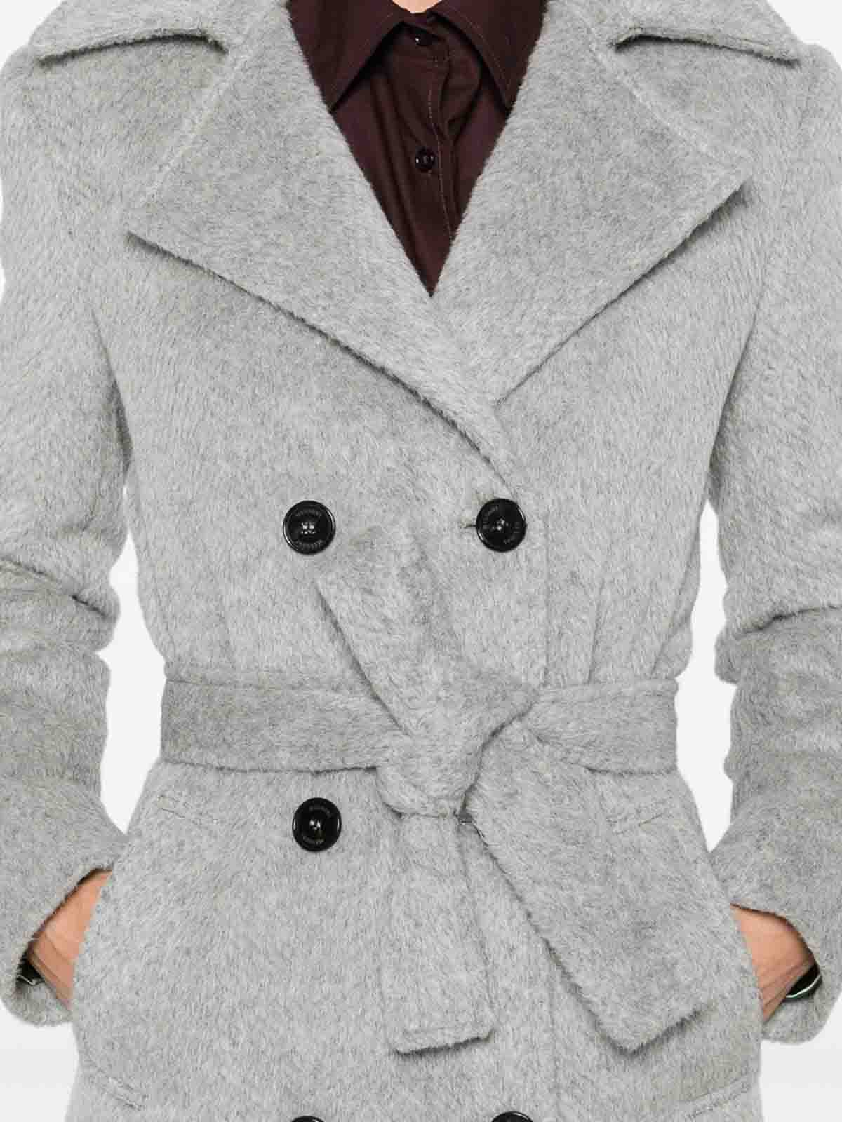 Grigia a doppia e mezza con cintura a doppio petto maniche lunghe con intaccata.