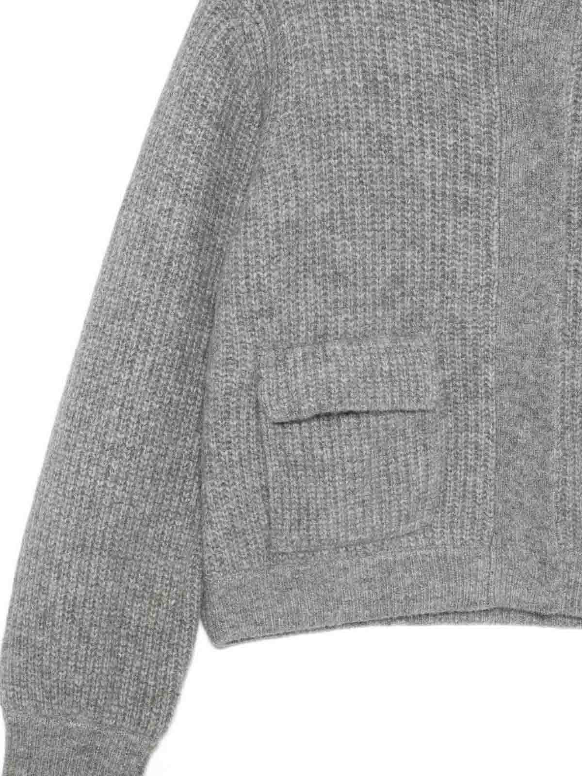 Grigio lavorazione in maglia a coste tasche applicate scollo con colletto frontale con abbottonatura maniche lunghe
