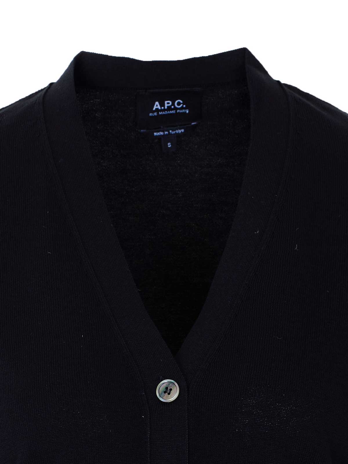 A.p.c. cardigan nero, colletto regolare, chiusura con bottoni, maniche corte, logo ricamato sul fondo