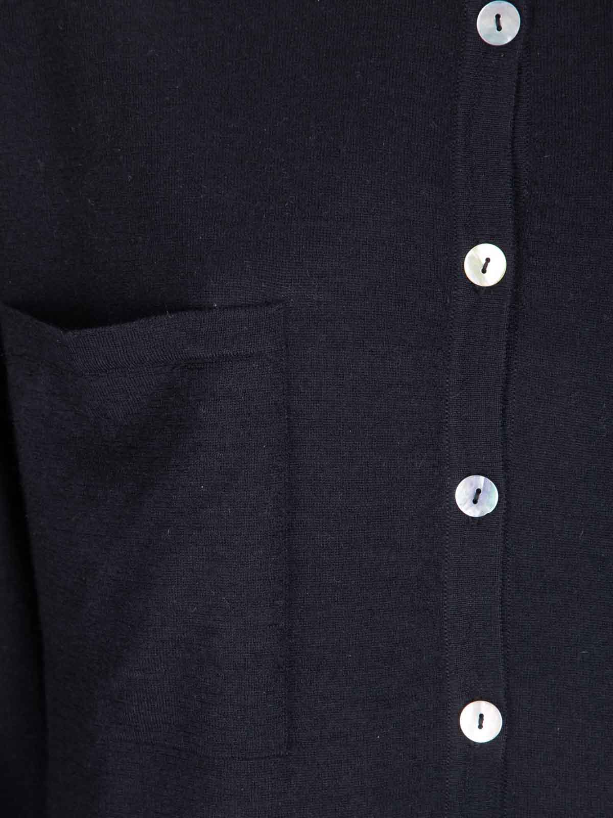 Maglia cardigan con colletto, chiusura con bottoni, manica lunga con polsini, due tasche sul petto, orlo dritto, fit morbido.