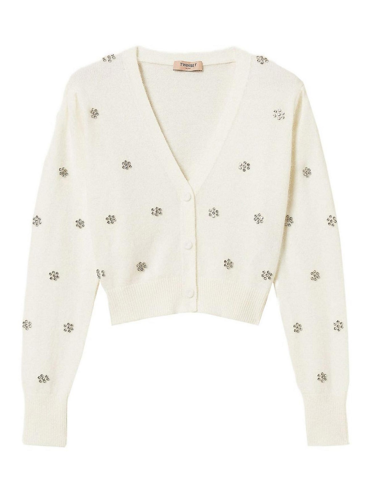 TWINSET: cardigan - Cardigan con bottoni e decorazioni in strass