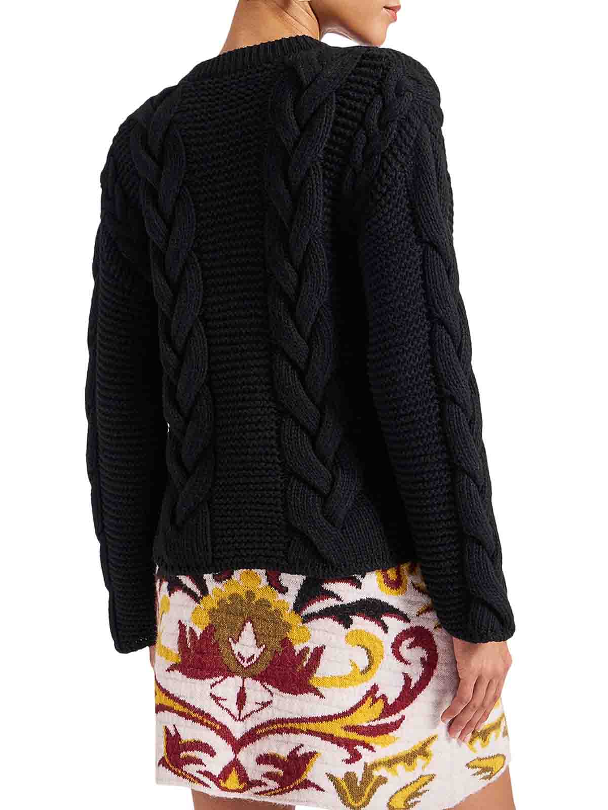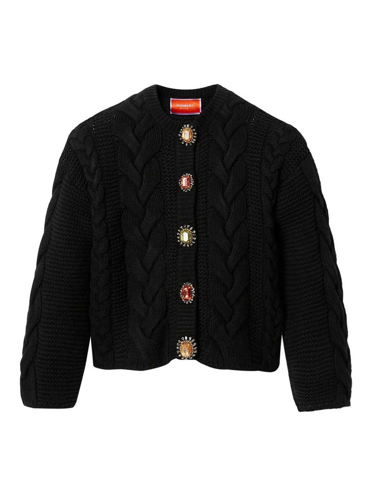 Cardigan corto- girocollo- maxi maglia a trecce- maniche lunghe-, decorazioni con pietre preziose- colore nero/tinta unita