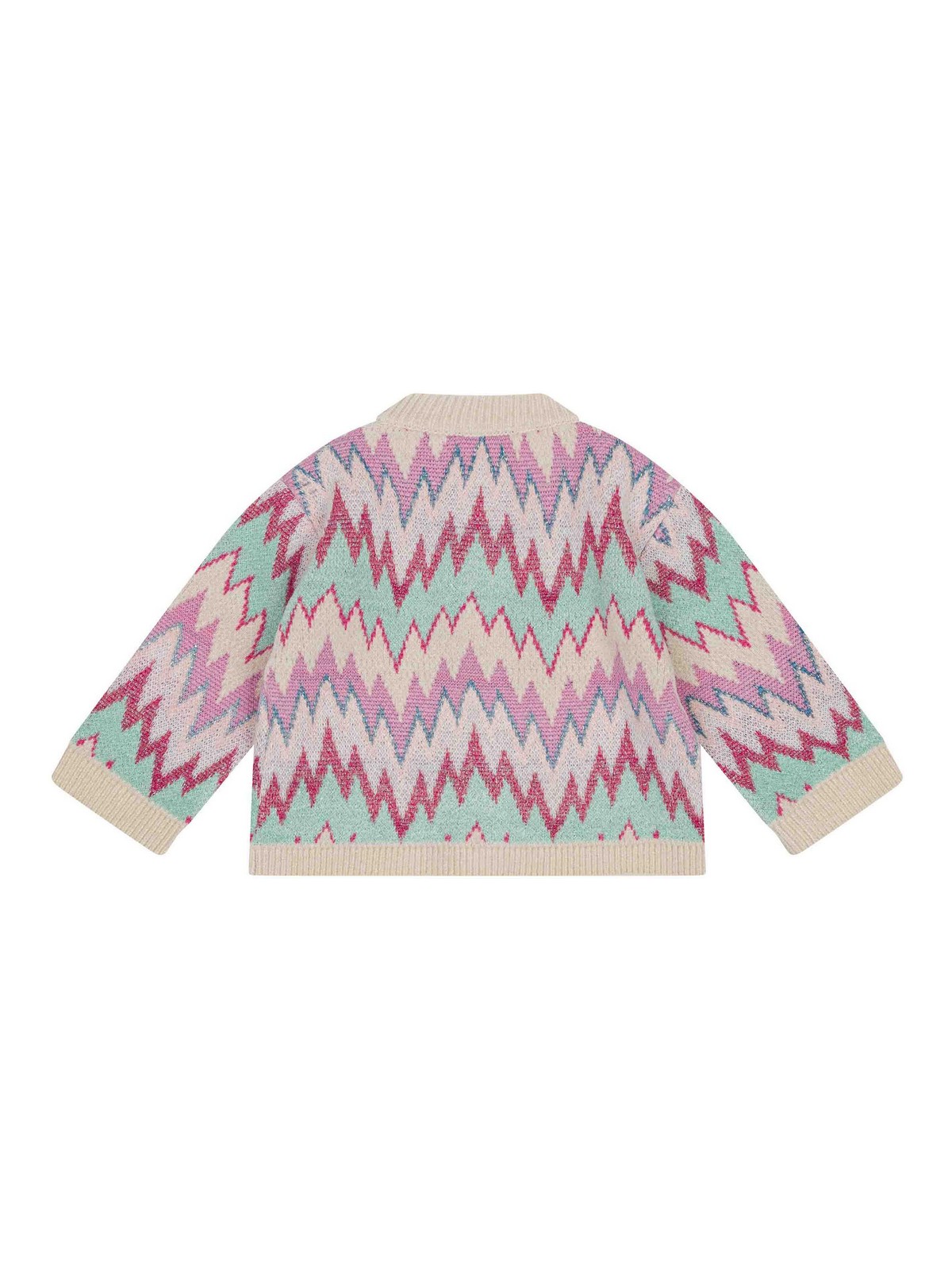 Cardigan con stampa multicolorl con abbototnatura sul davanti