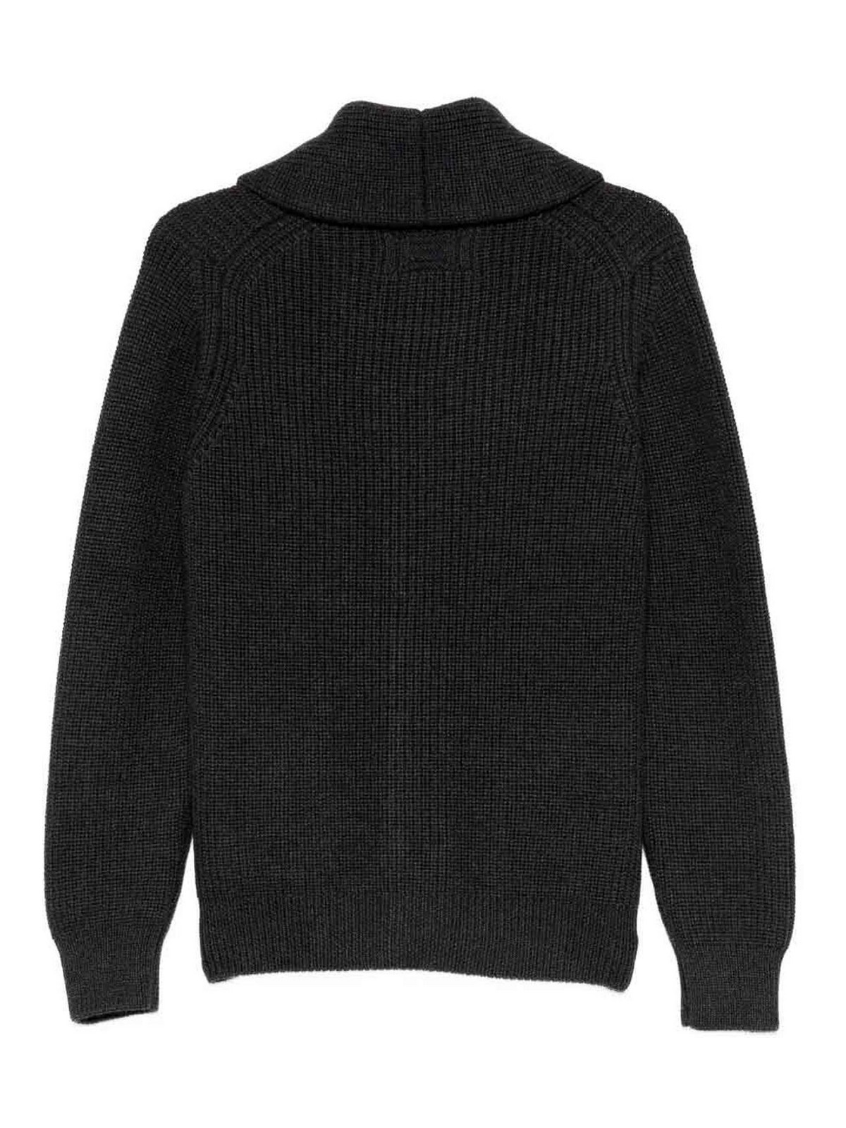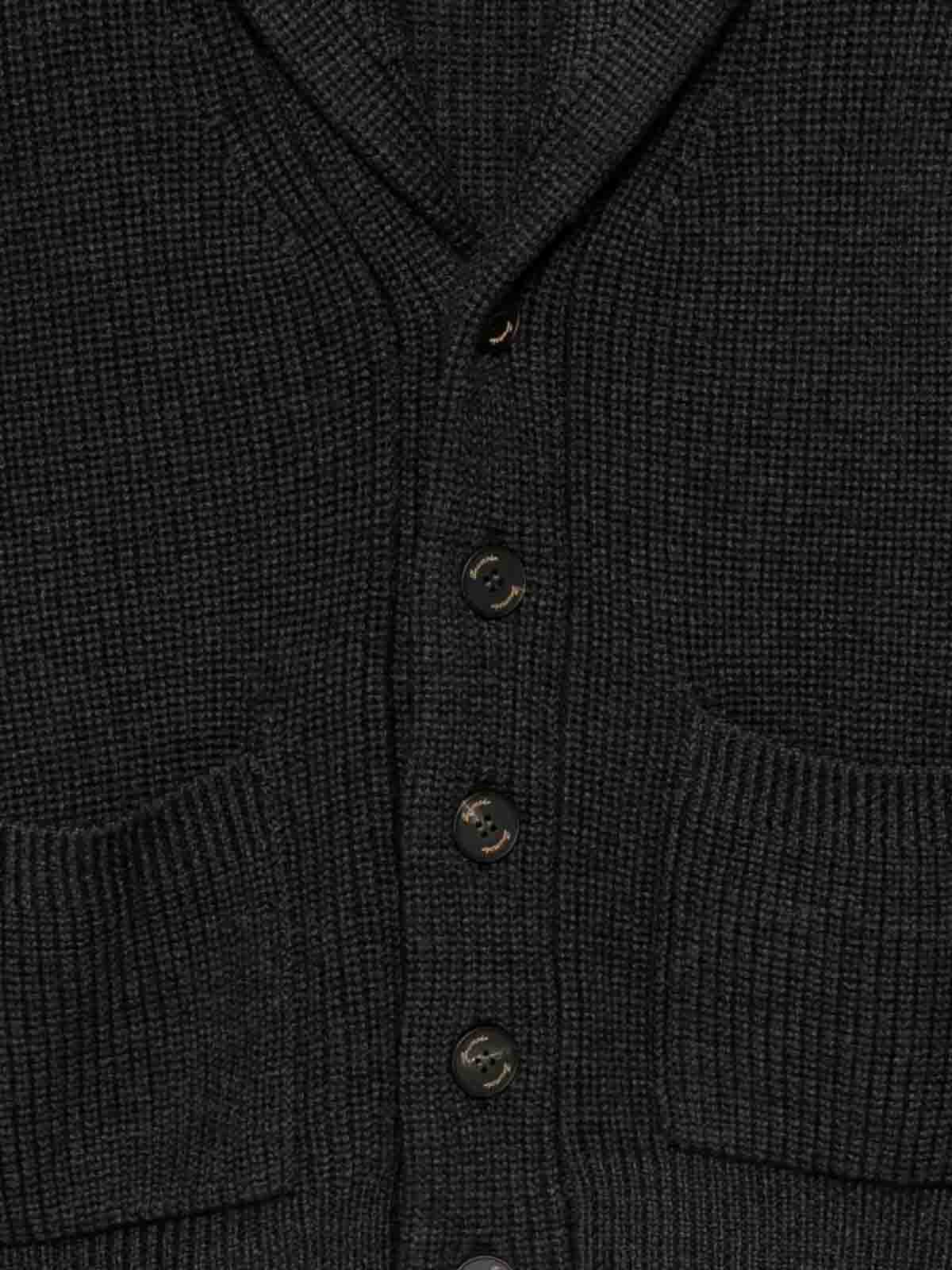 Cappotto a collo sciallato in maglia a coste grigio carbone con bottoni, tasche a toppa e maniche lunghe
