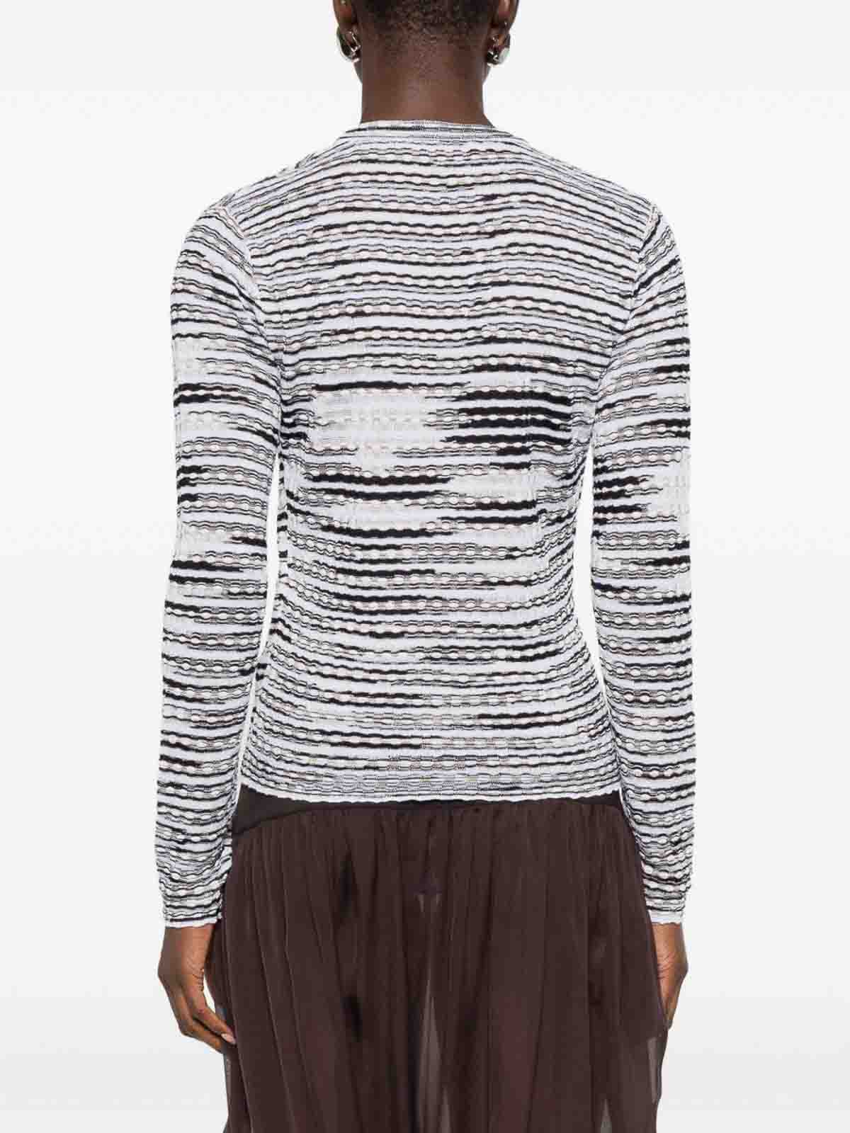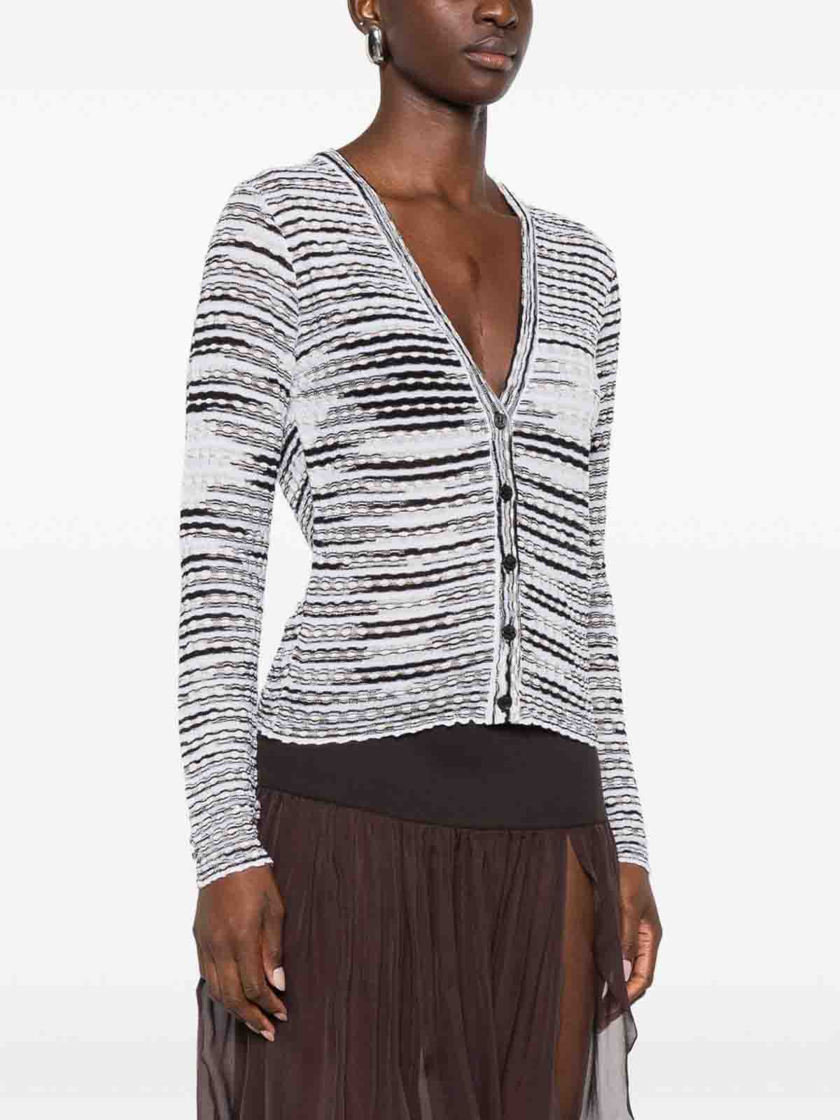 Maniche lunghe con scollo a V e chiusura a bottoni con motivo a strisce bianche, l'articolo ricevuto potrebbe differire leggermente dall'articolo fotografato. ciò dovuto alla natura artigianale con cui sono costruiti tutti i prodotti Missoni.