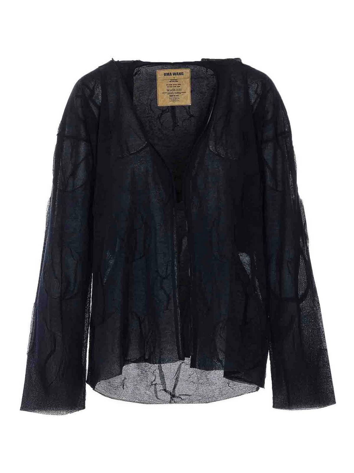 Cardigan Uma Wang nero, maniche lunghe, silhouette aperta