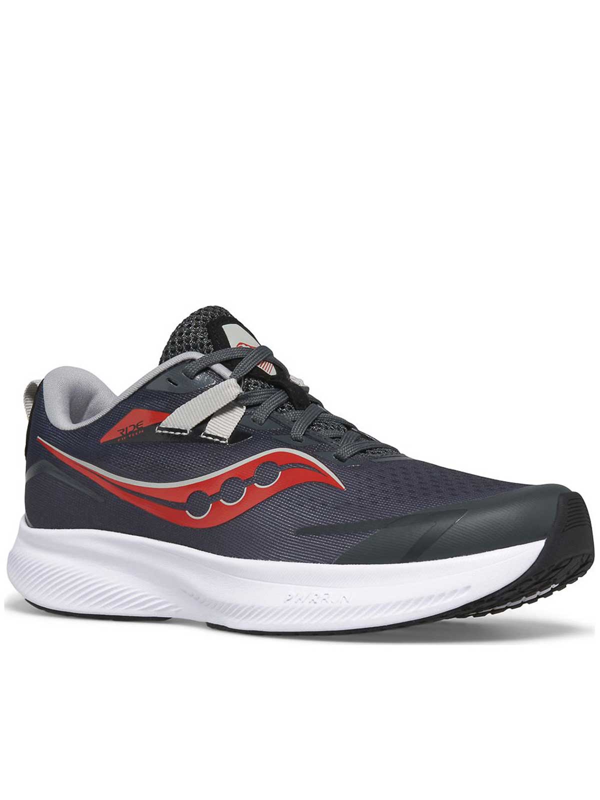 Le versione completamente ridisegnata delle scarpe saucony ride per bambini offre morbidezza sostegno e leggerezza in una scarpa da running che sembra quasi irreali la tecnologia del plantare sagomato formfit garantisce maggior comfort sotto il piede mentre la lining resistente agli odori mantiene la scarpa fresca