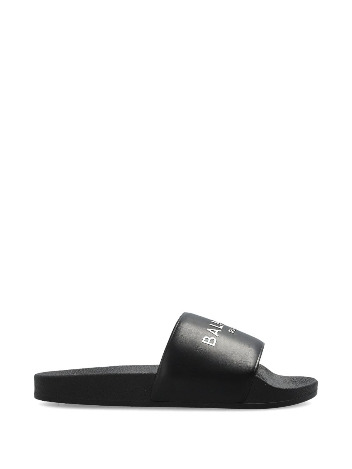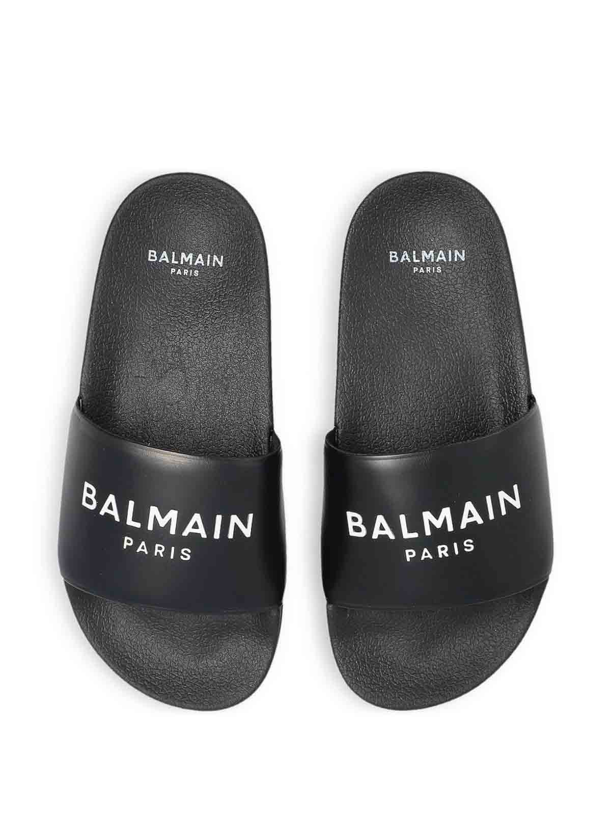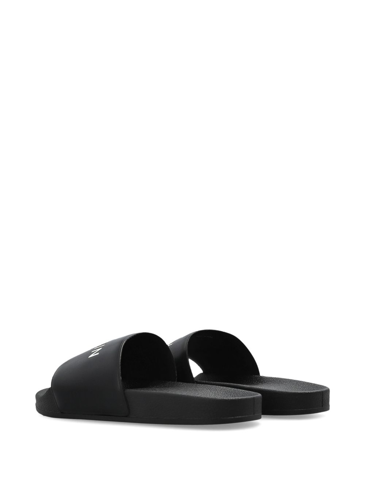 Ciabatte con logo nero logo in lettere design slip, on punta aperta plantare sagomato