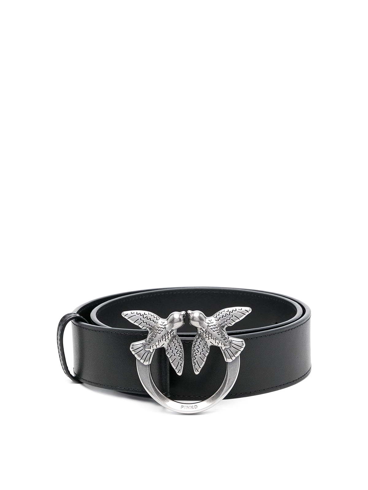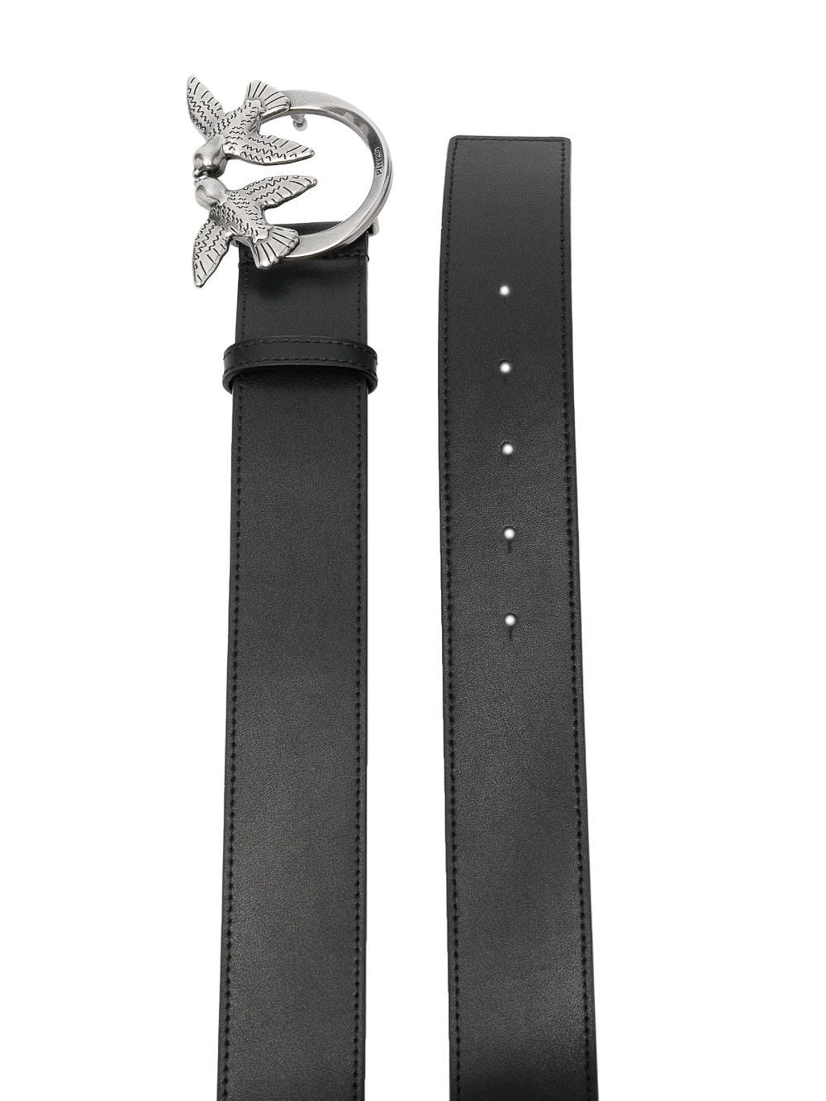 Cintura nera love berry in pelle di vitello pinko chiusura con fibbia color argento fiore liscio e vestibilita  regolabile