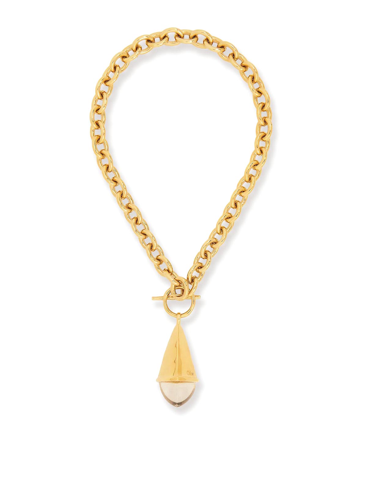 Chiusura con gancetto in metallo sulla parte anteriore maxi pendente prisma struttura con catena made in italy ottone
