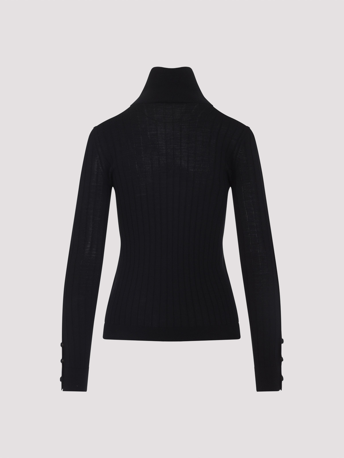 Monler Moncler Virgin Virgin Wool Turtle Neck. Realizzato nella miscela di lana vergine e cashmere. Discia di tartaruga, maniche lunghe, polsini abbottonati tonali, orlo dritto, costine.