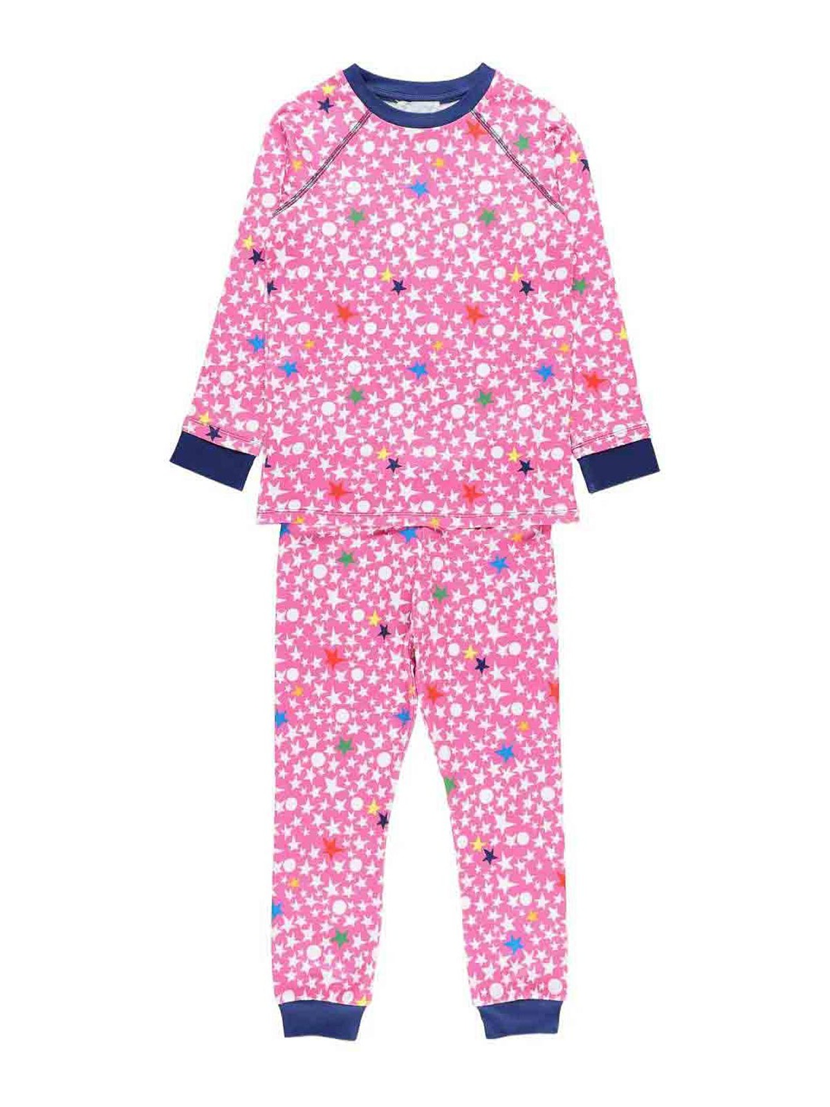 Completo con stampa rosa motivo a stelle maniche raglan orlo blu navy vita elasticizzata risvolti alla caviglia
