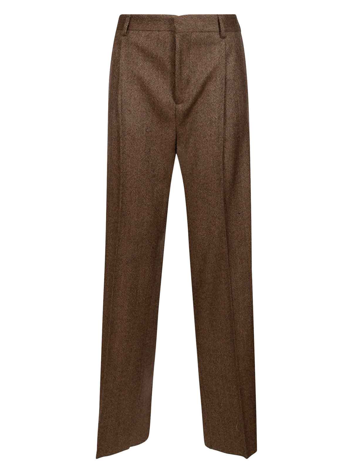 Saulina milano vestito composto da giacca doppiopetto spigata con rever e con bottoni ottonati 7/8 due tasche applicate e scco sul retro ntalone spigato a vita alta con gamba dritta tasche laterali e tasche a filetto sul retro con zip e gancetto ssanti per cintura, marrone