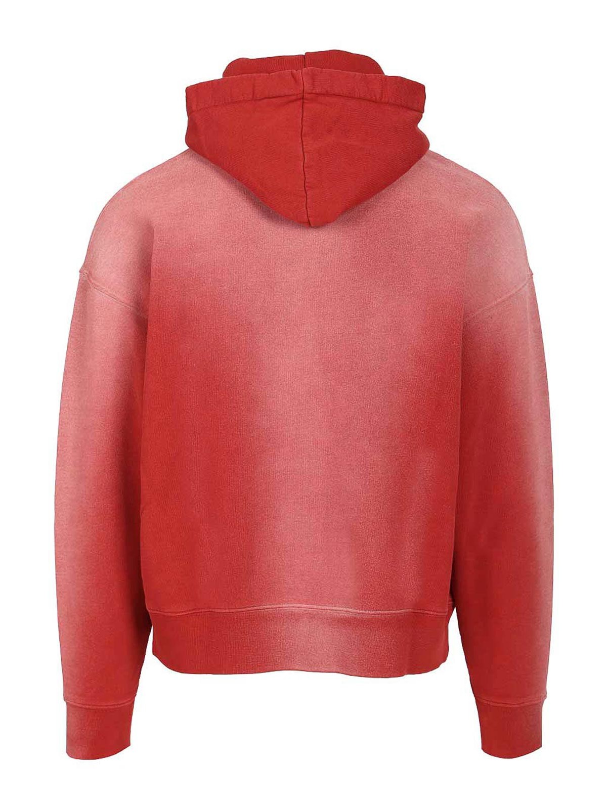 Hoodie a effetto spray usato con tasche di canguro e stampa di micro logo