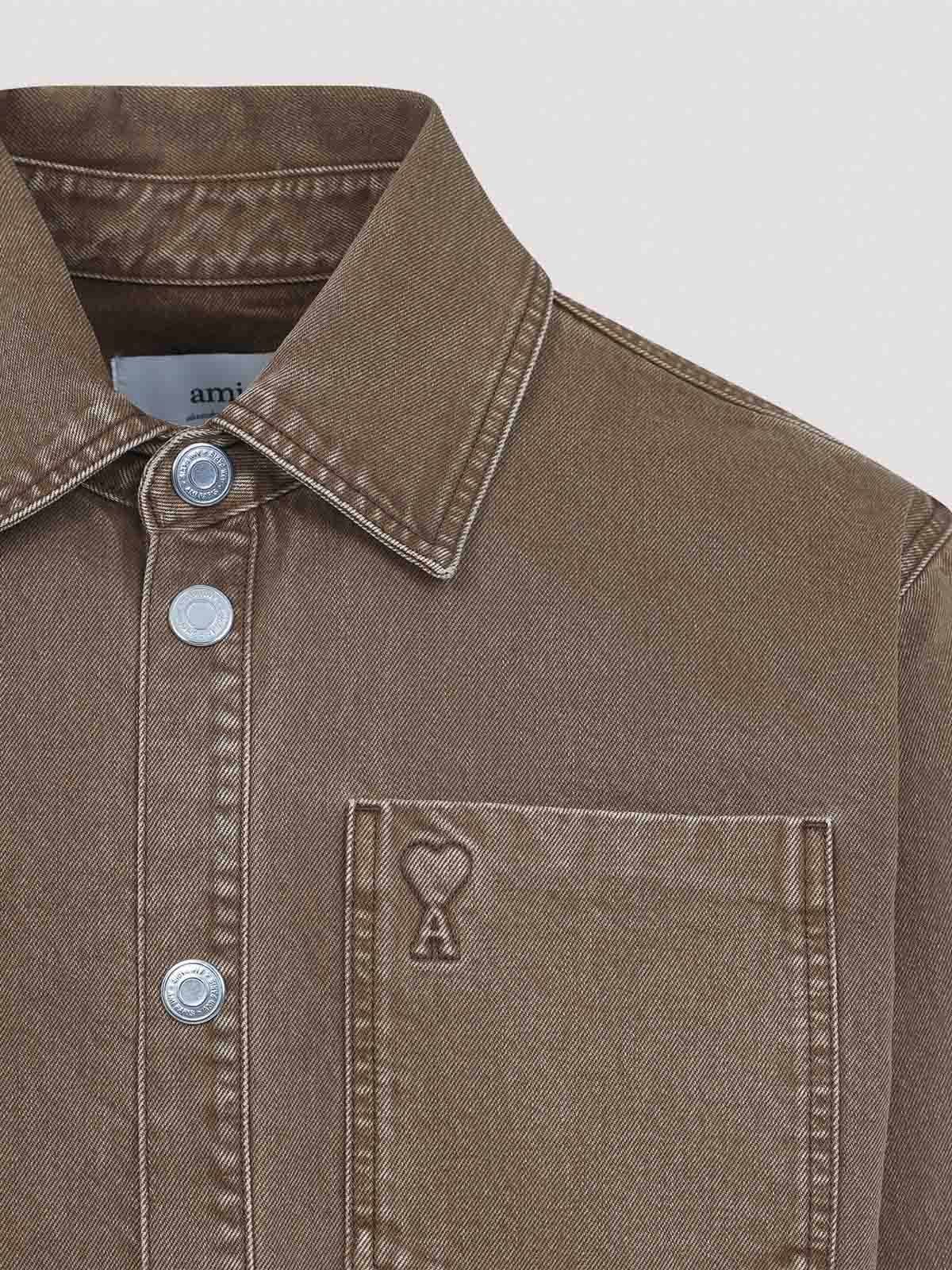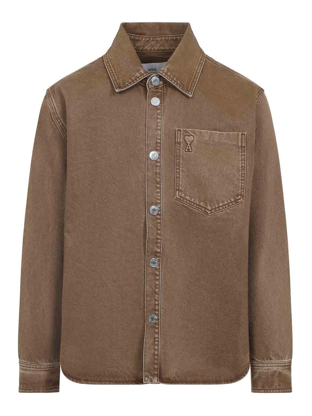 Ami Hazelnut Brown de coeur Openshirt Pure Hazelnut Brown Overshirt Collar abbottonate Poccola della toraggio tasca a tasca lunga maniche a bottoni abbottini