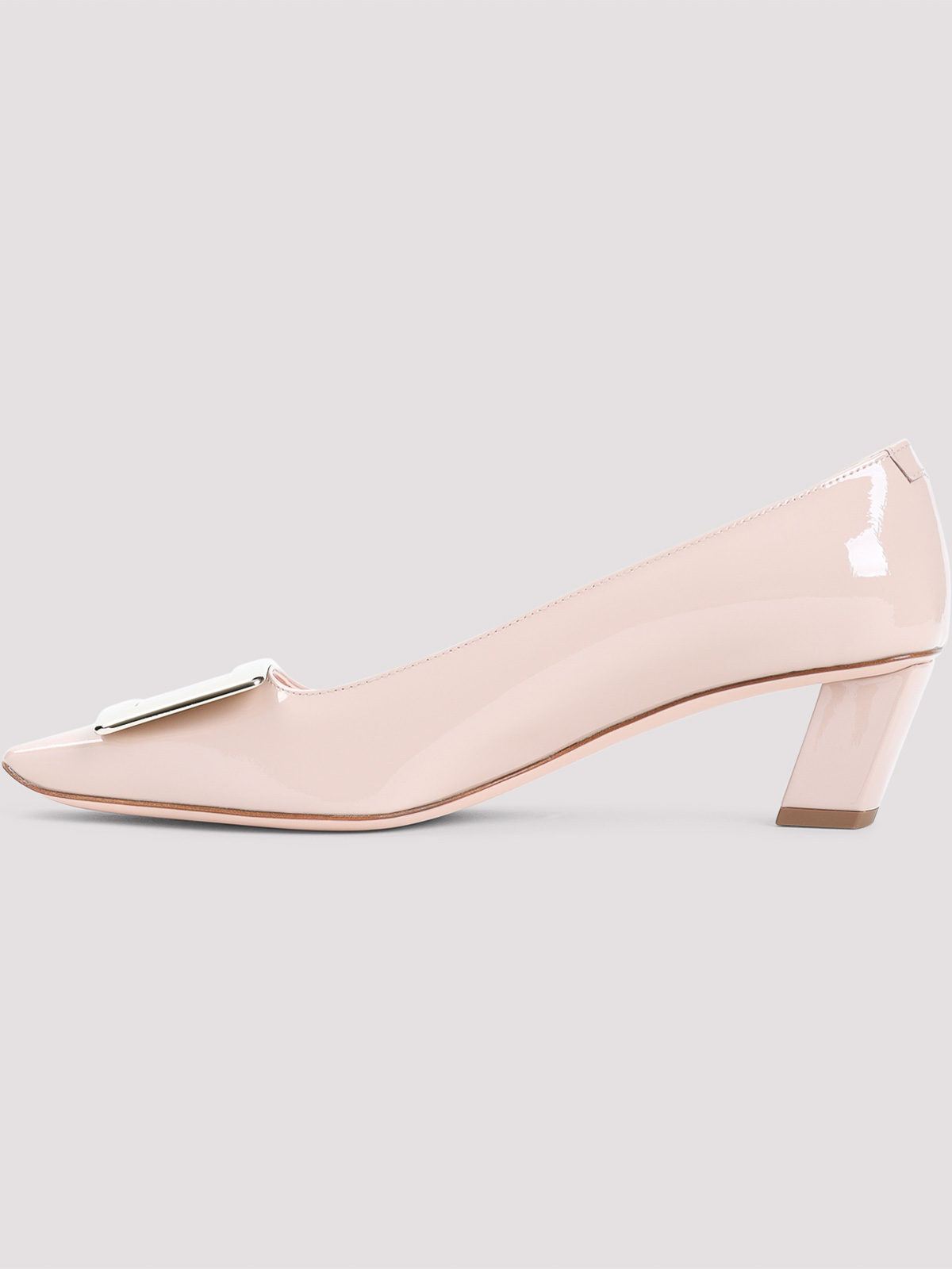 Décolleté Roger Vivier Belle in pelle di vitello rosa. realizzato in pelle di vitello verniciata rosa, punta squadrata, placchetta in metallo argentato sulla parte superiore. tacco largo inclinato. sottopiede e suola in pelle.