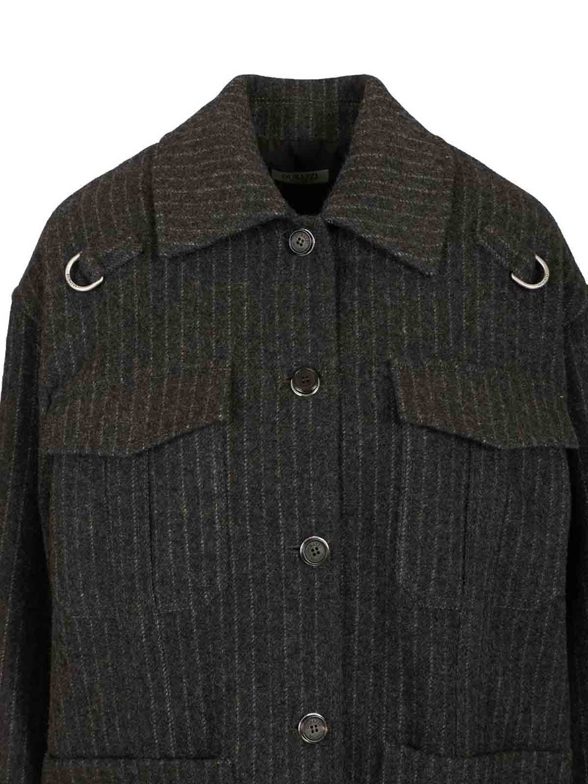 DURAZZI MILANO: knee length coats - Pinstriped Wool Overshirt