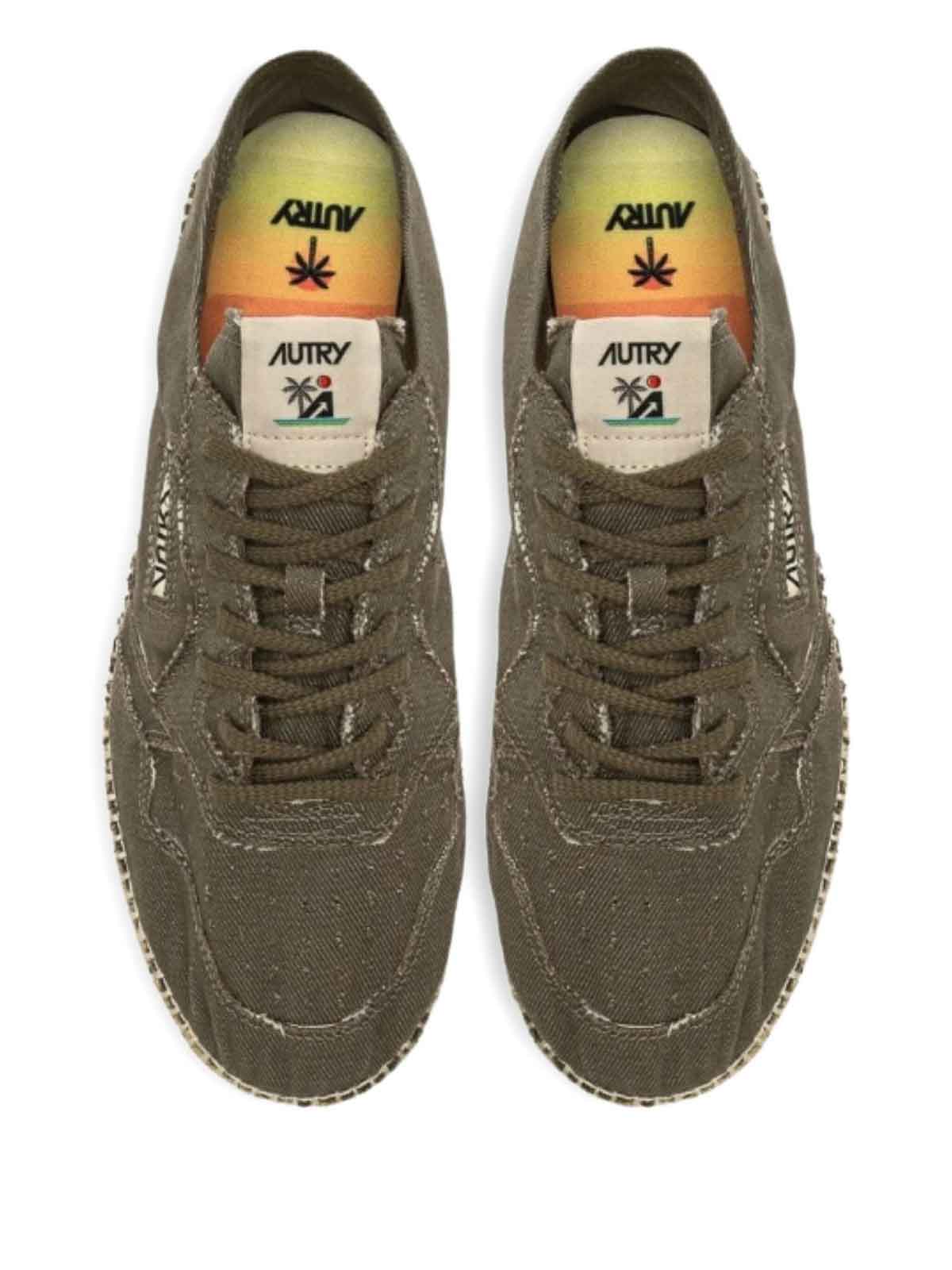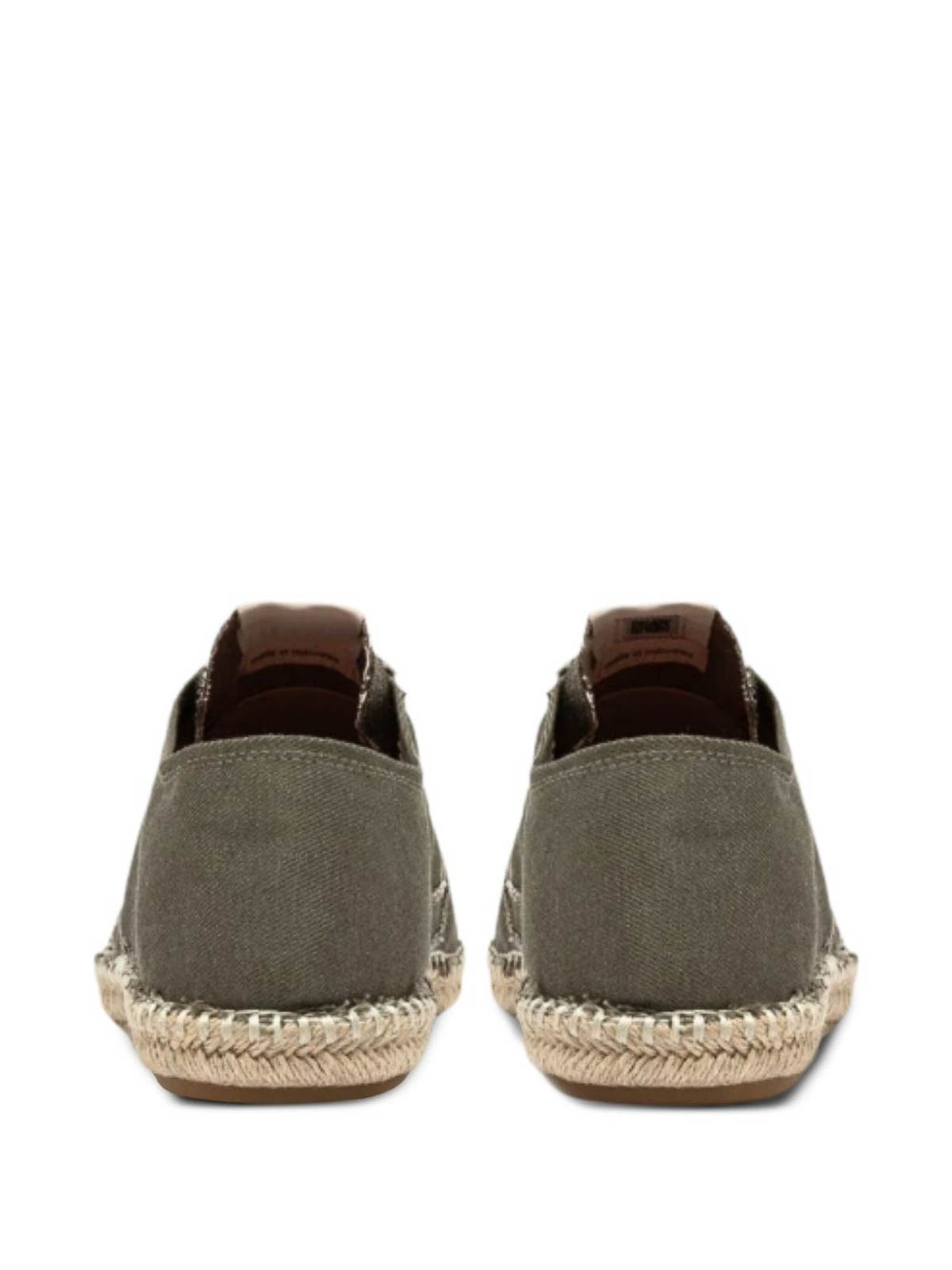 Oliva, tomaia in tela, lacci in corda, esclusivo logo jacquard laterale, appositamente progettato con un motivo ispirato all'estate per il modello Sandy, etichetta con logo cucita sulla linguetta, fodera in cotone., soletta interna rialzata di 0,5 cm, realizzata in tela con stampa color tramonto, plantare a doppia densità per un comfort maggiore, suola in EVA, materiale sintetico leggero e flessibile abbinato alla corda, altezza suola: 1,7 cm.