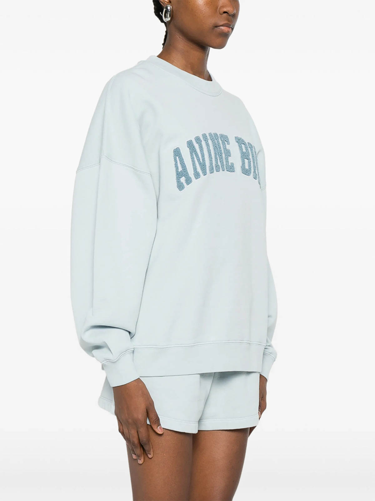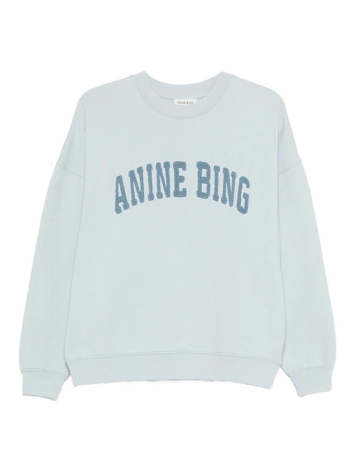 Maniche lunghe con logo azzurro, orlo e polsini a coste