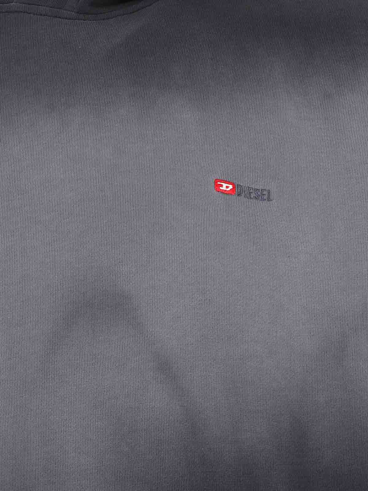 Felpa cappuccio logo diesel, in cotone nero, lavaggio usured, ricamo logo petto, una maxi tasca fronte, orlo dritto.