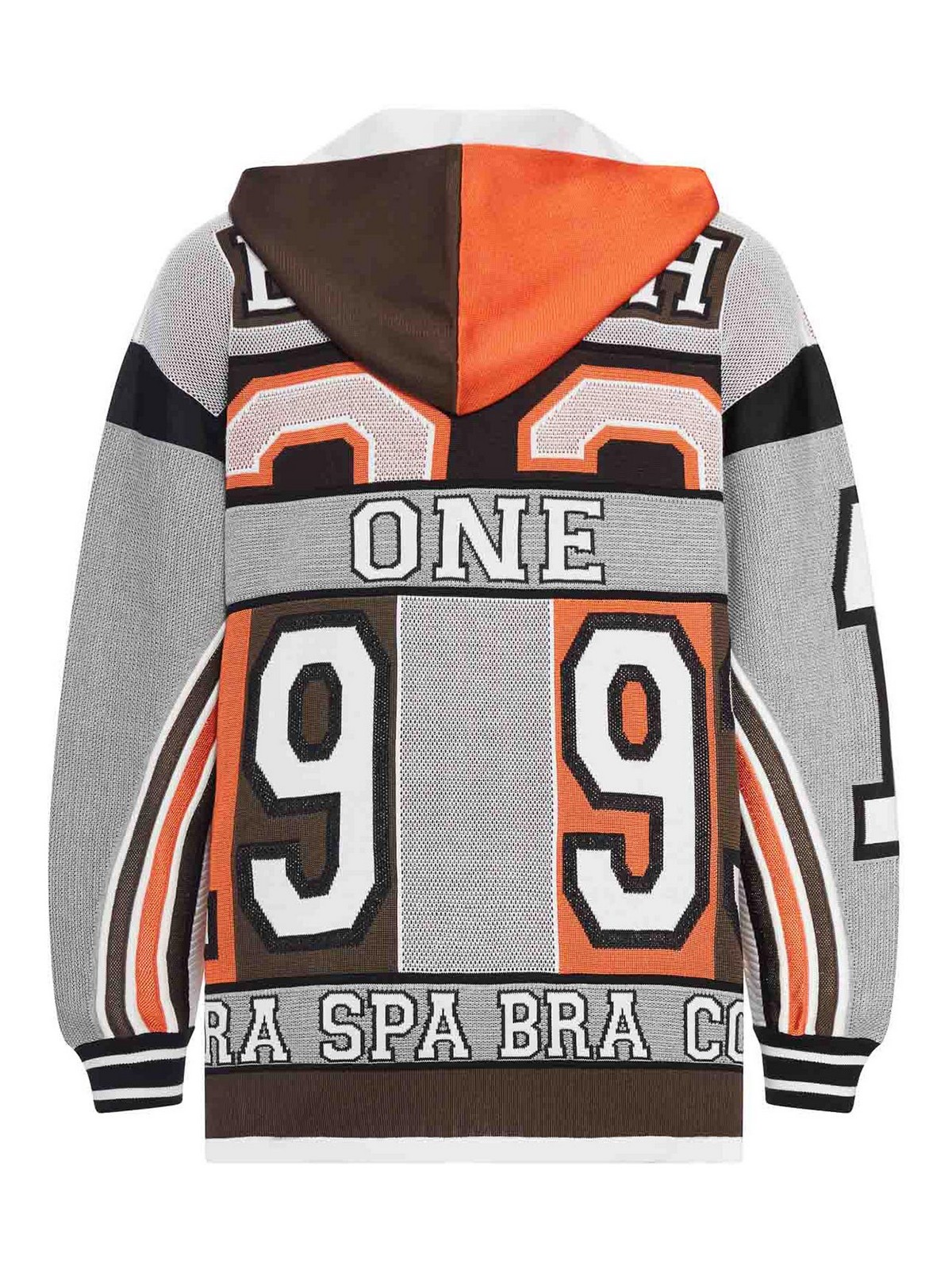 Cappuccio - tre bottoni, giromanica sceso - maniche lunghe ampie - polsini elasticizzati - stampa aeronautica - vestibilità  oversize - colore grigio/arancione