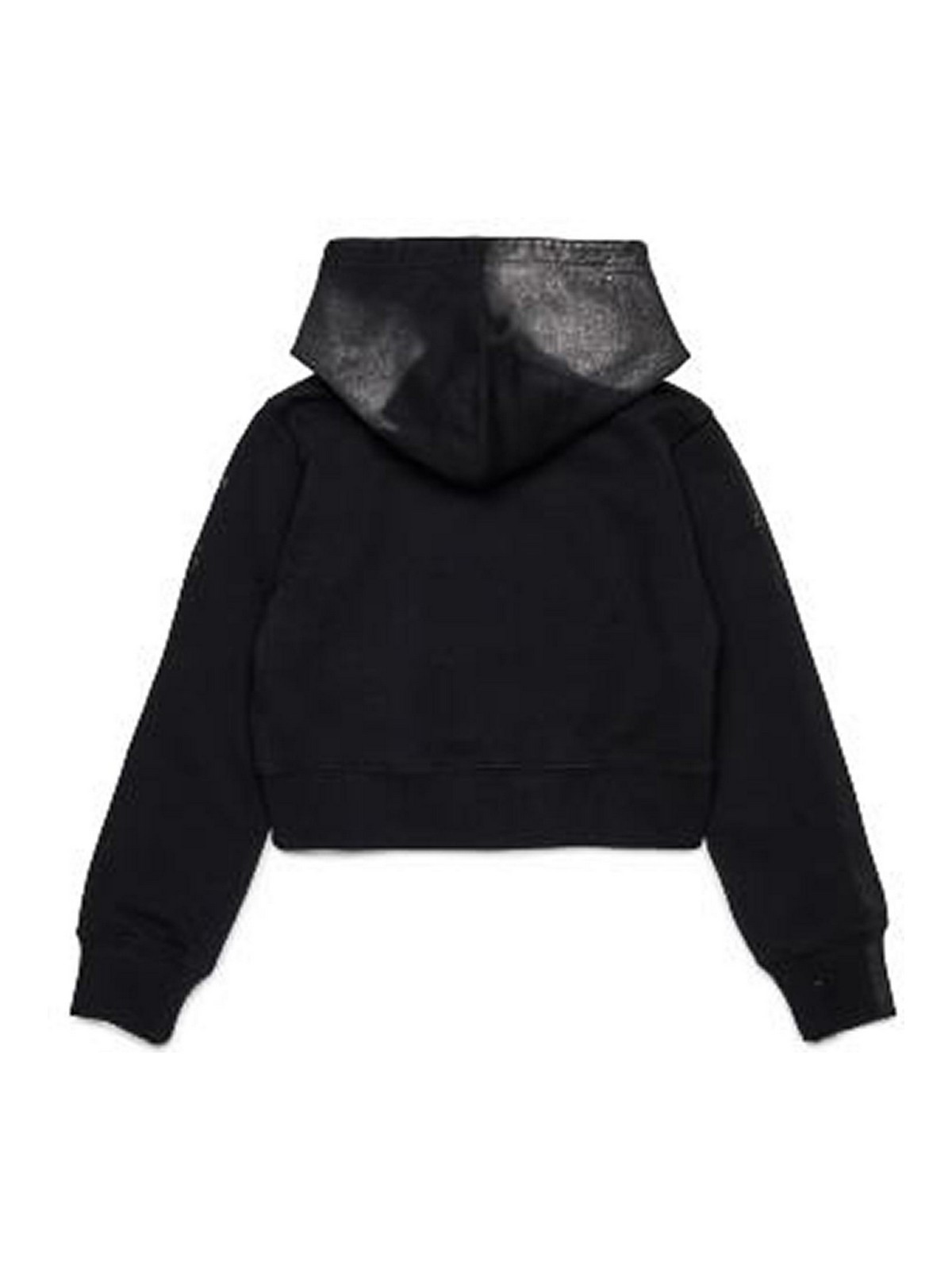 Felpa con logo nera modello crop collo hooded polsini a costine