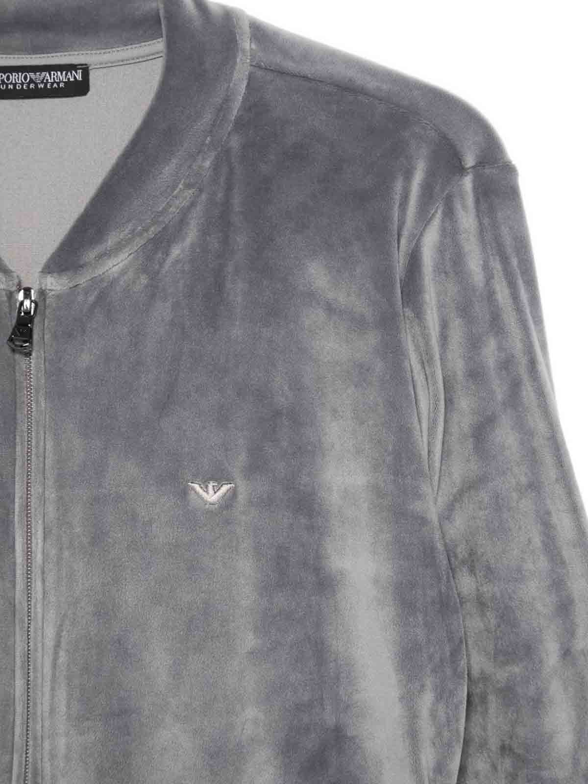 Dettaglio logo grigio chiusura con zip maniche lunghe girocollo