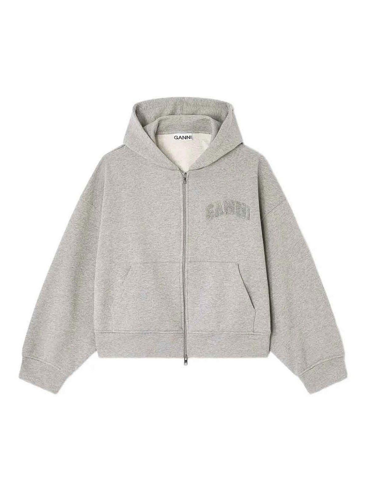 Felpa con cappuccio e zip in jersey spugna pesante paloma melange