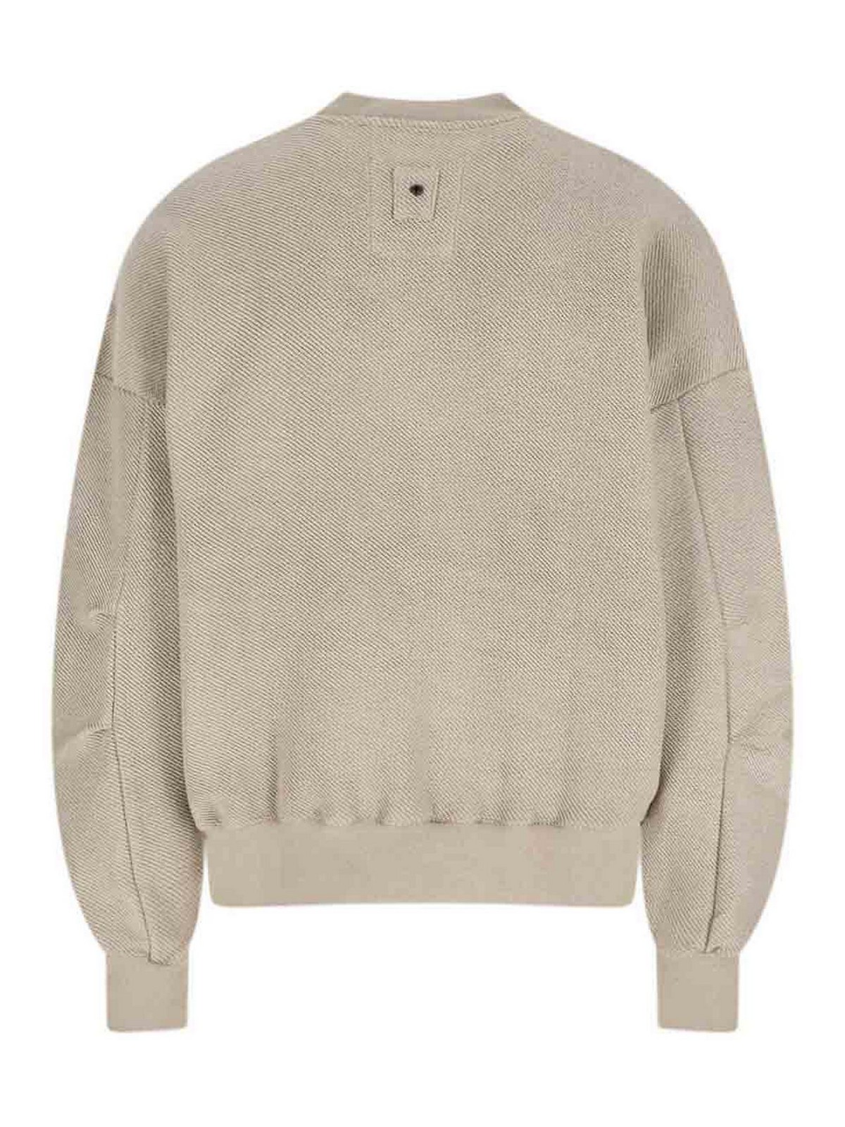 Felpa girocollo white sand, in cotone beige, spalle scese, maniche lunghe, finiture a costine, dettaglio logo retro, orlo dritto.