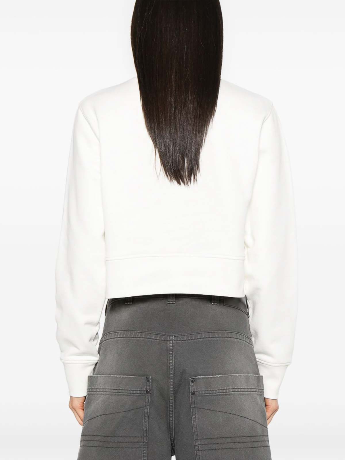 Dettagli hardware ad anello bianco con motivo orso, girocollo, maniche lunghe