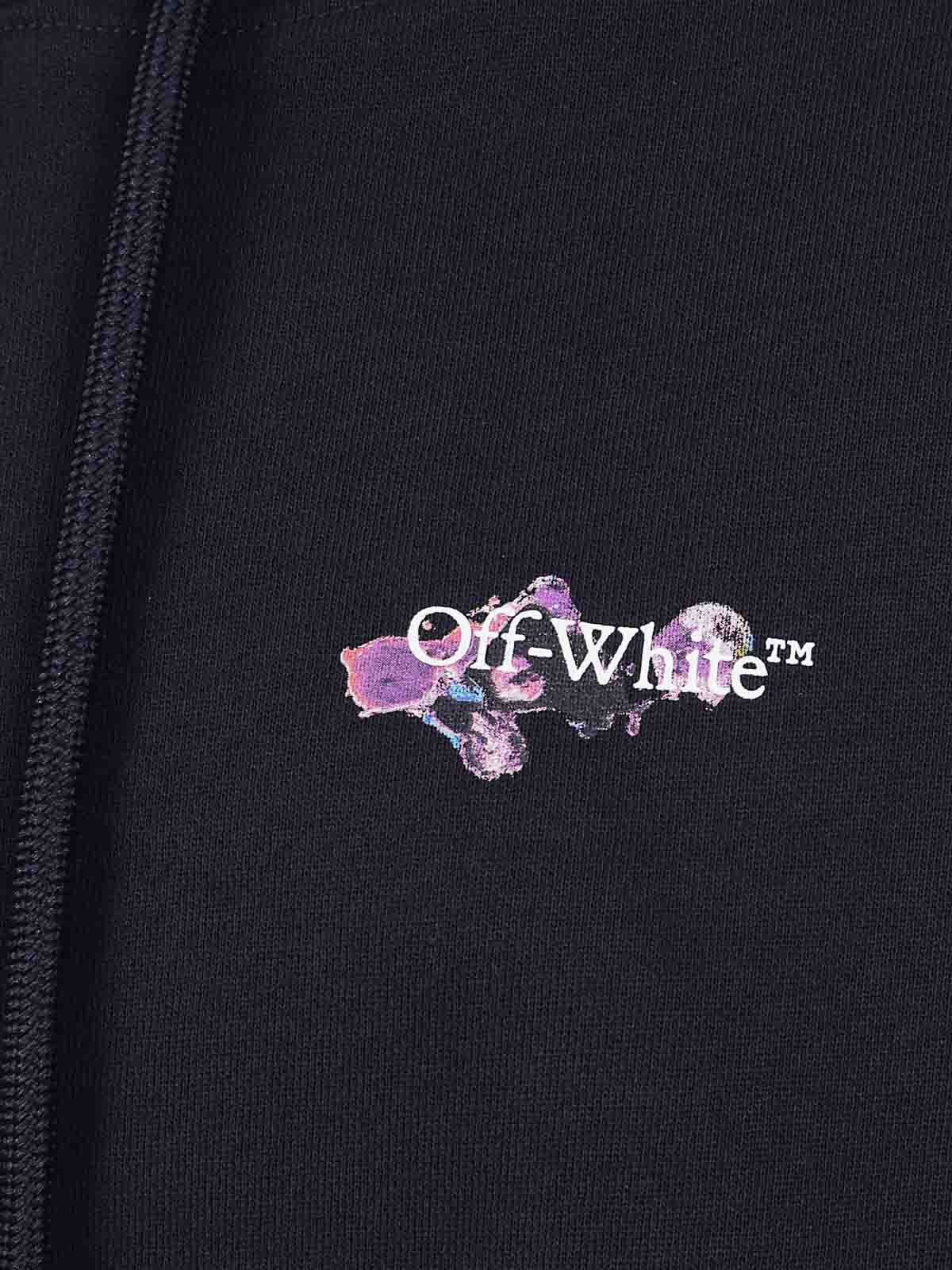 Felpa in cotone di off white. cappuccio regolabile con coulisse, maniche lunghe, profili con elastico a costine, tasca frontale a marsupio, design vestibilita' morbida. caratterizzata da logo off-white sul petto e motivo arrow sul retro acquerellati, gocciolati nel cielo notturno.