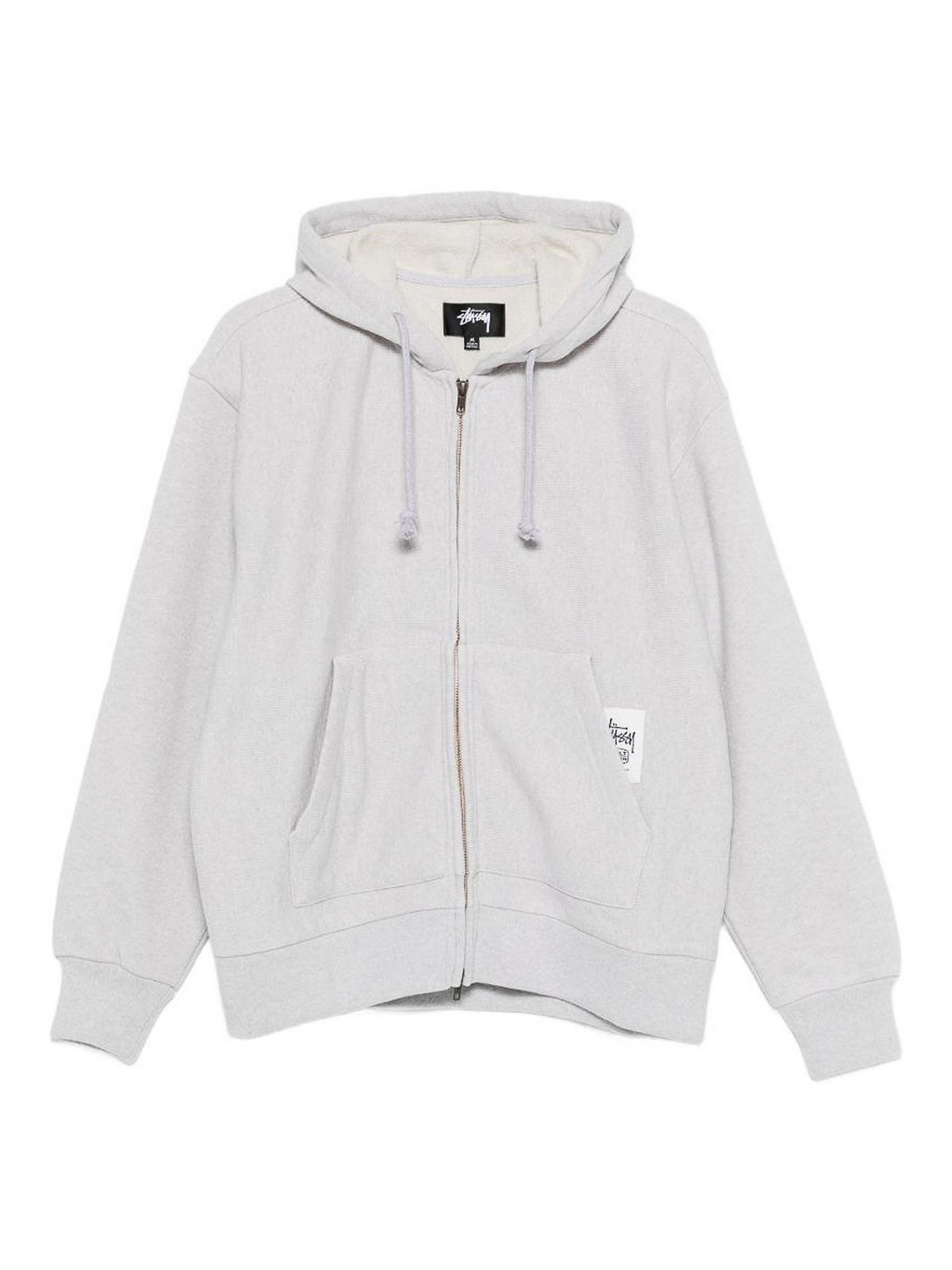 Patch logo grigio, tasche frontali cappuccio chiusura con zip fondo a coste