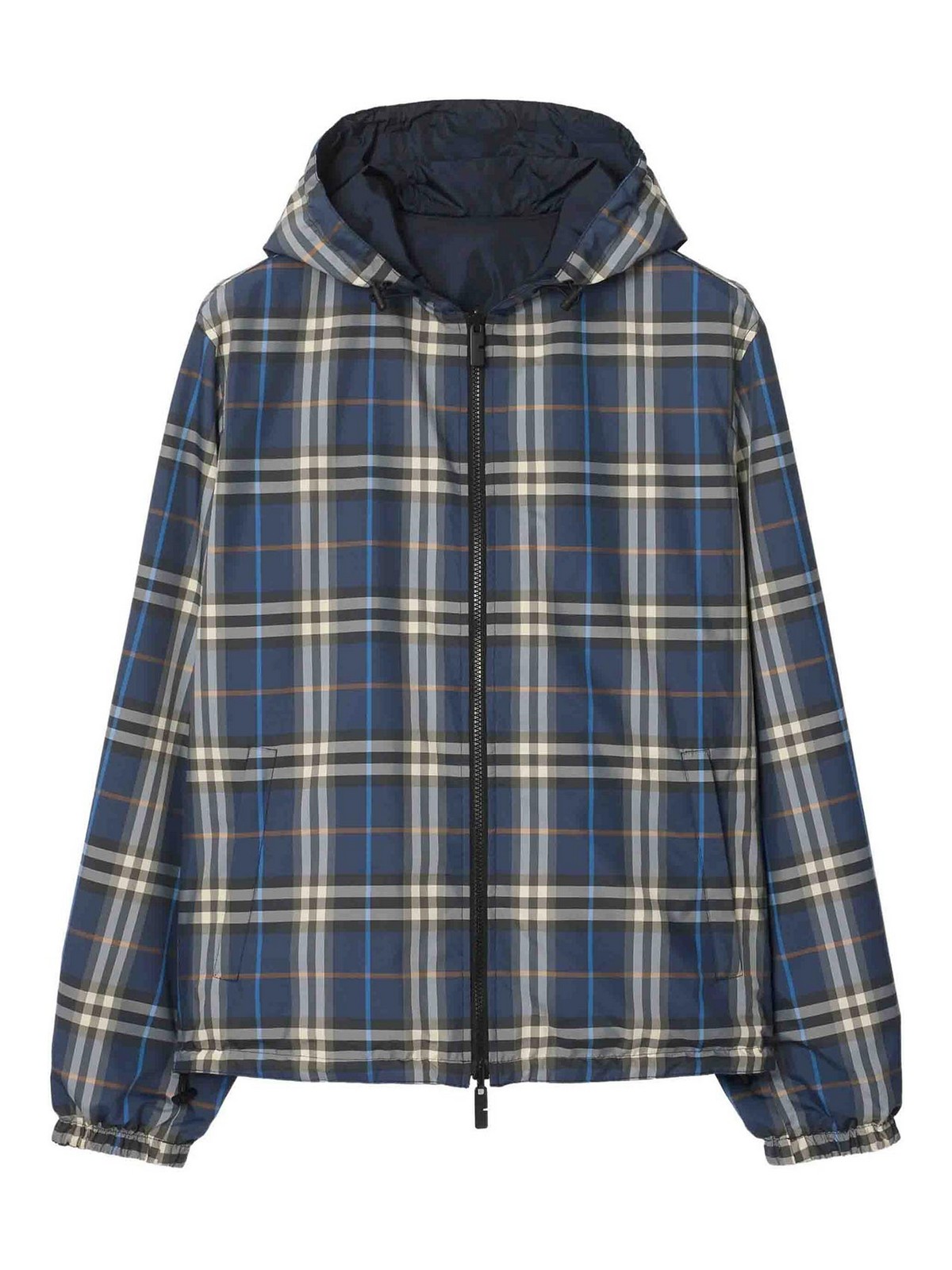 colore firmato: check blu pilota, fantasia a quadri, cappuccio, reversibile, chiusura con zip, polsini elasticizzati